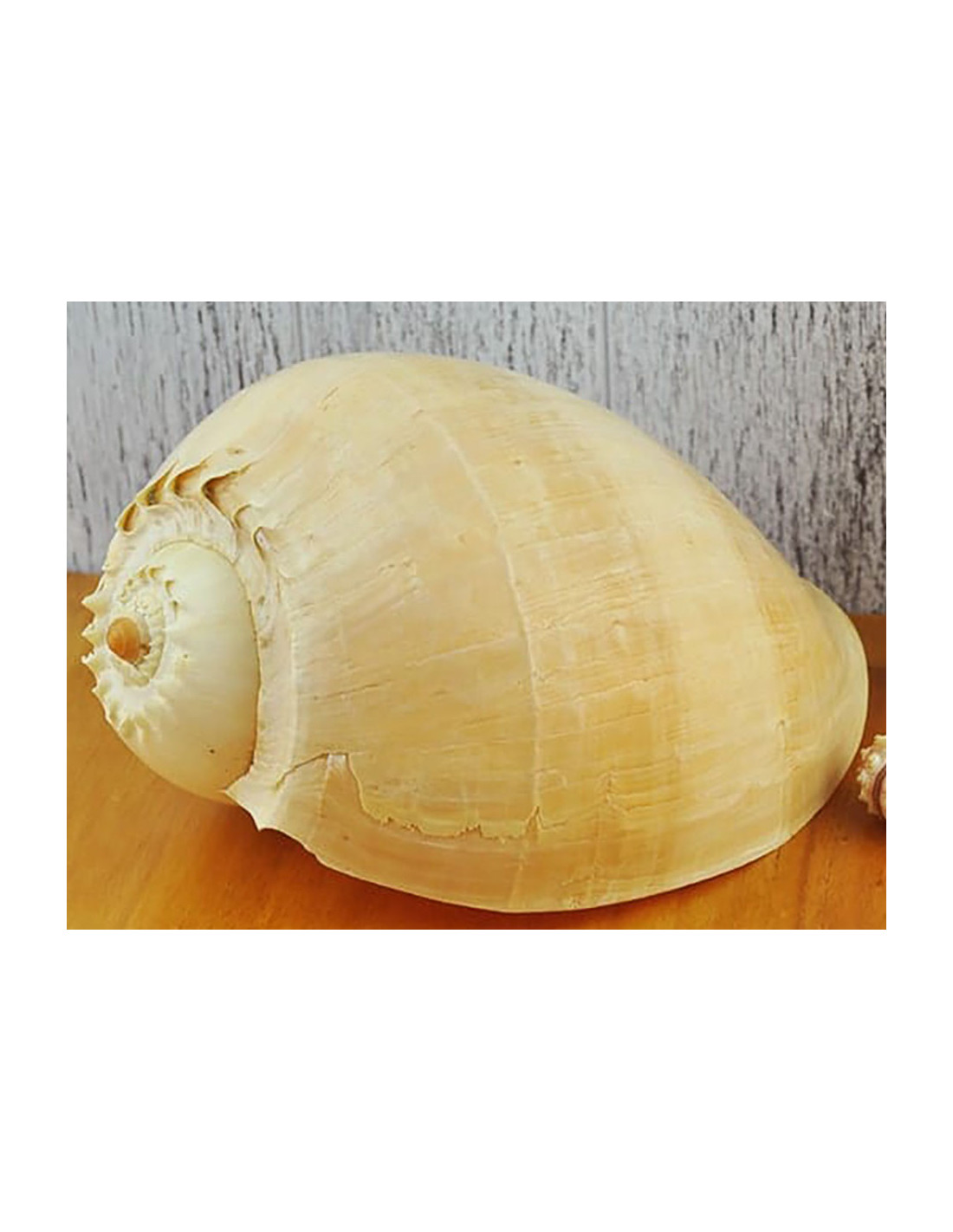 La caracola Melo diadema es una espectacular concha marina de gran tamaño, conocida por su forma elegante y su presencia imponente. Vive enterrada en fondos de arena y su concha, de tonos blanco crema o ligeramente amarillentos, presenta una superficie lisa y un contorno ovalado marcado por delicadas líneas naturales de crecimiento. En ocasiones, esta singular especie puede producir grandes perlas no nacaradas, lo que la convierte en una pieza aún más especial. La Melo diadema es ideal para decoración marina y náutica, perfecta para colocar sobre un mueble de madera, una estantería o en un baño sobre mármol, aportando autenticidad, calma y espíritu marinero al hogar.