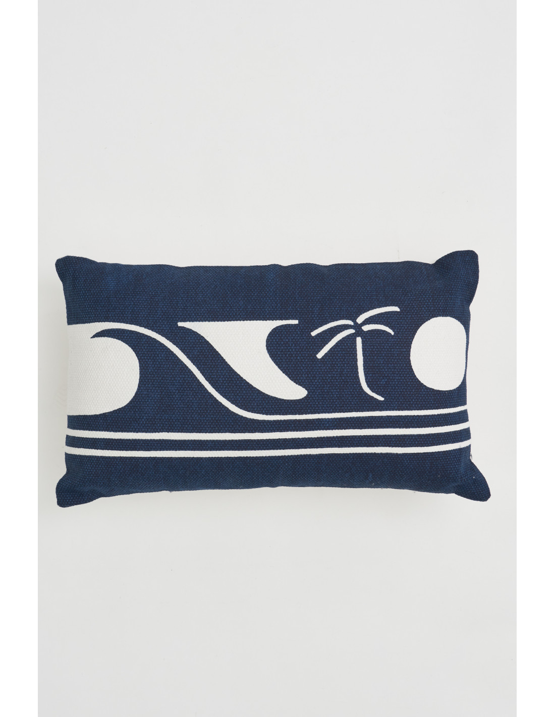 Cojín azulino con un estilo surfero que evoca la frescura del mar y la emoción de las olas. Con motivos relacionados con el surf, este cojín añade un toque playero y dinámico a cualquier espacio.