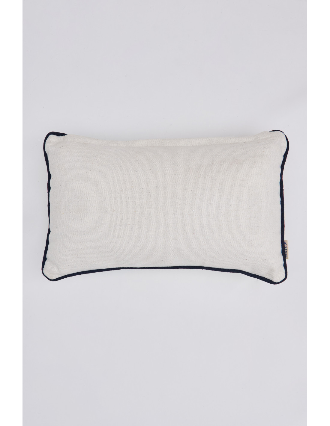 Cojín rectangular de color blanco con un diseño cautivador: una tabla de surf en tono turquesa surfeando sobre las olas. El borde del cojín está resaltado en un tono azul que complementa perfectamente el tema del surfing. Este cojín, además de su atractivo diseño, es altamente funcional ya que es fácil de lavar, lo que lo hace ideal para el uso diario.