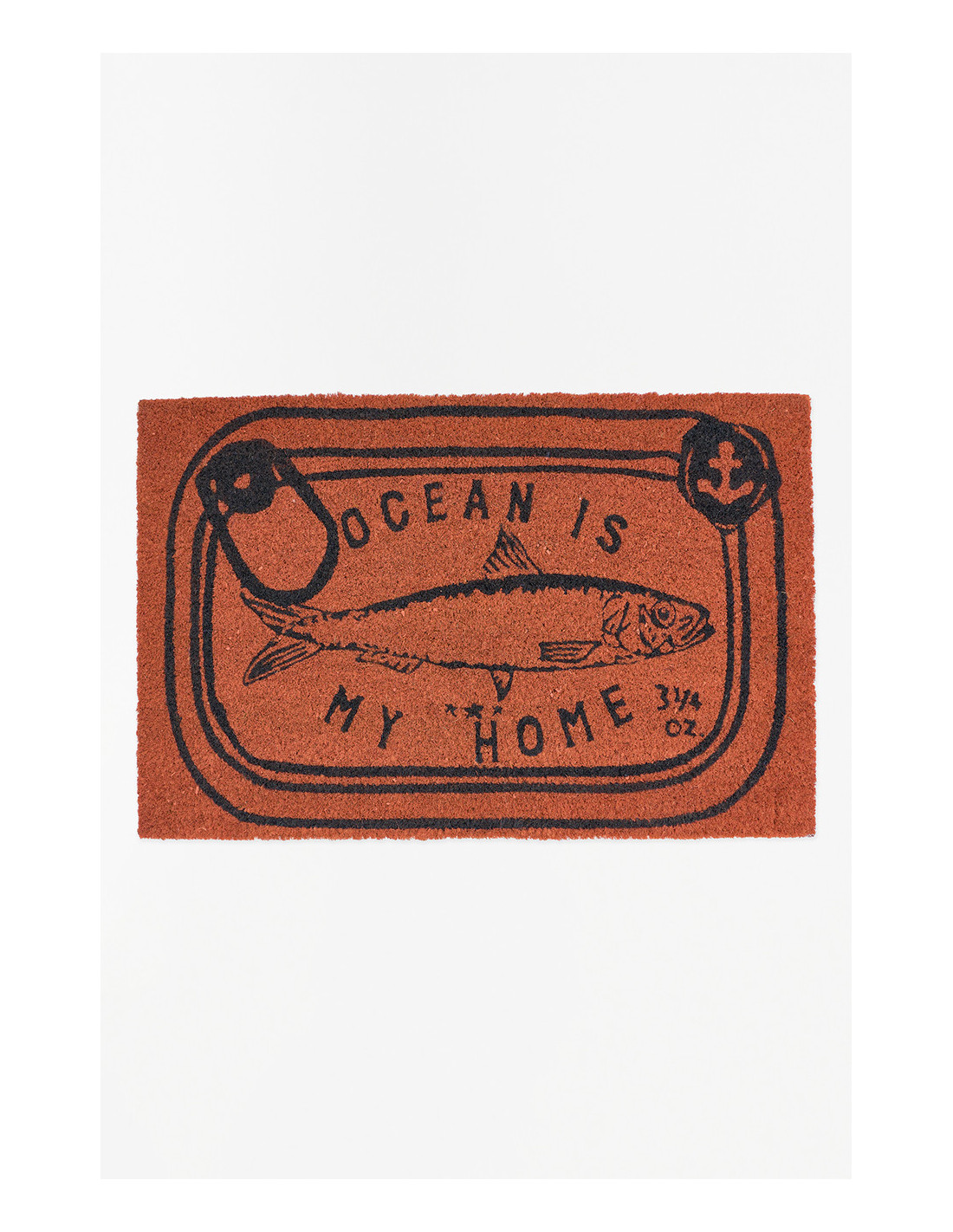Dale un aire fresco y divertido a tu hogar con este felpudo de fibra de coco, decorado con una lata de anchoas impresa. Su textura rugosa ayuda a limpiar los zapatos, mientras que su diseño único refleja la esencia del mar.