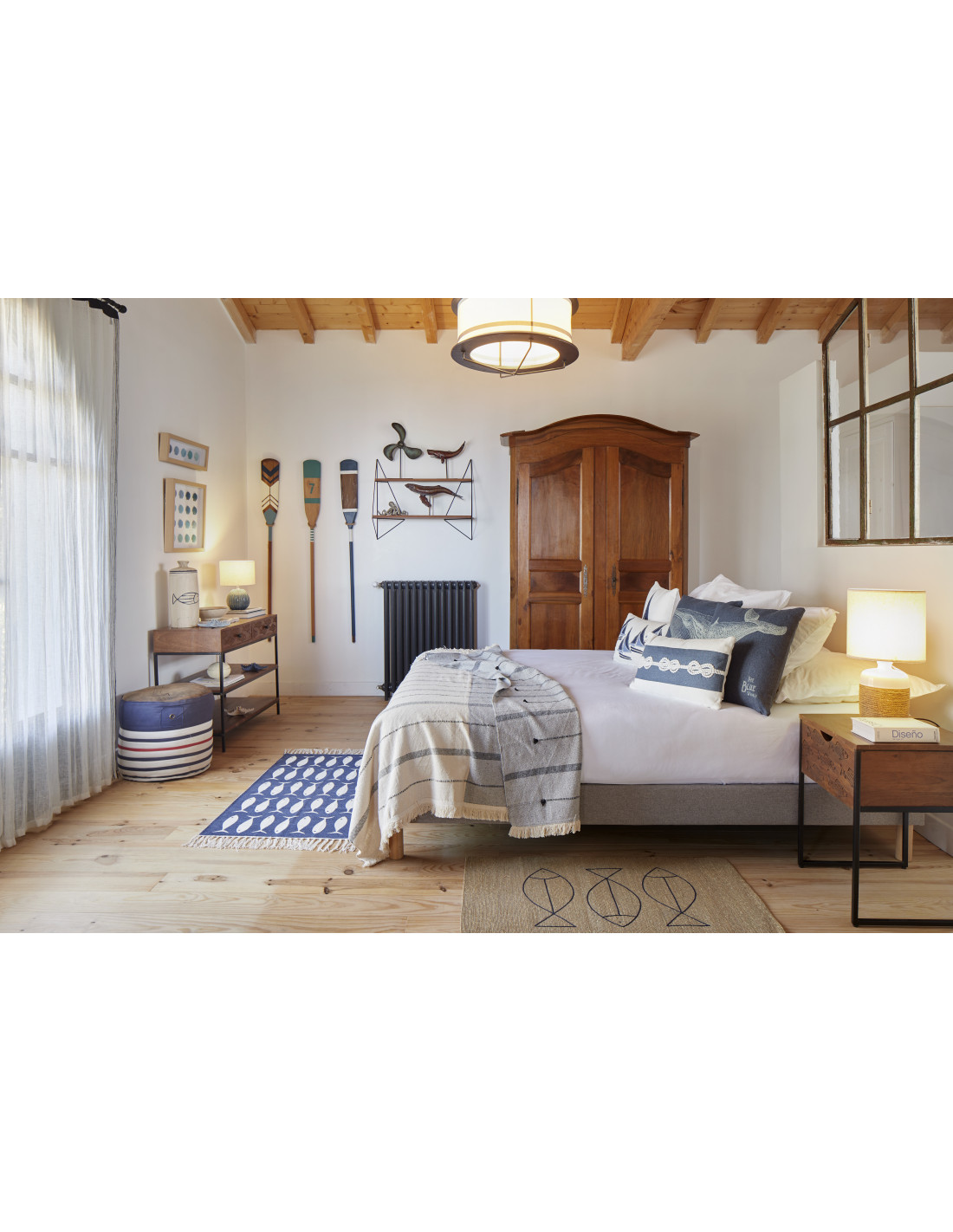 El diseño impreso de banco de peces añade un detalle decorativo con espíritu marinero, perfecto para quienes desean reflejar su amor por el mar desde el primer paso en su hogar.
