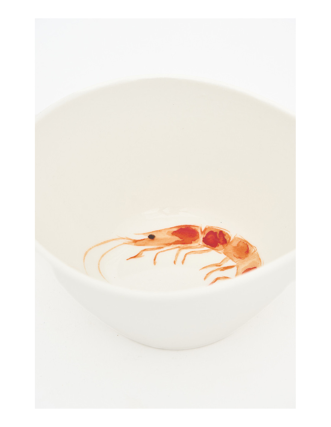 Este bol de porcelana blanca con un detallado estampado de gamba roja es la opción ideal para quienes buscan una vajilla con inspiración costera. Su superficie esmaltada le proporciona un tacto suave y un brillo elegante, mientras que su tamaño lo hace perfecto para sopas, cremas, ensaladas o pequeños aperitivos.
