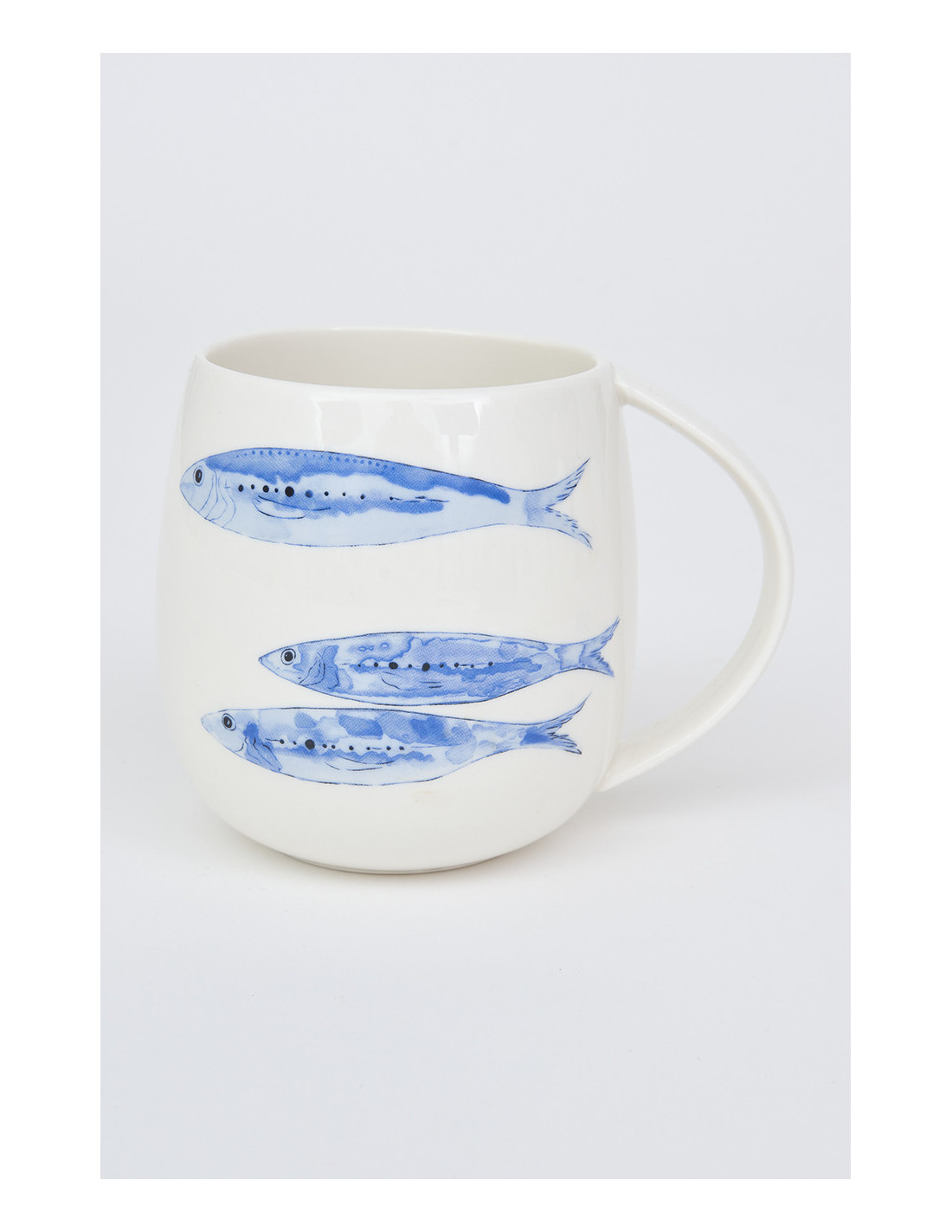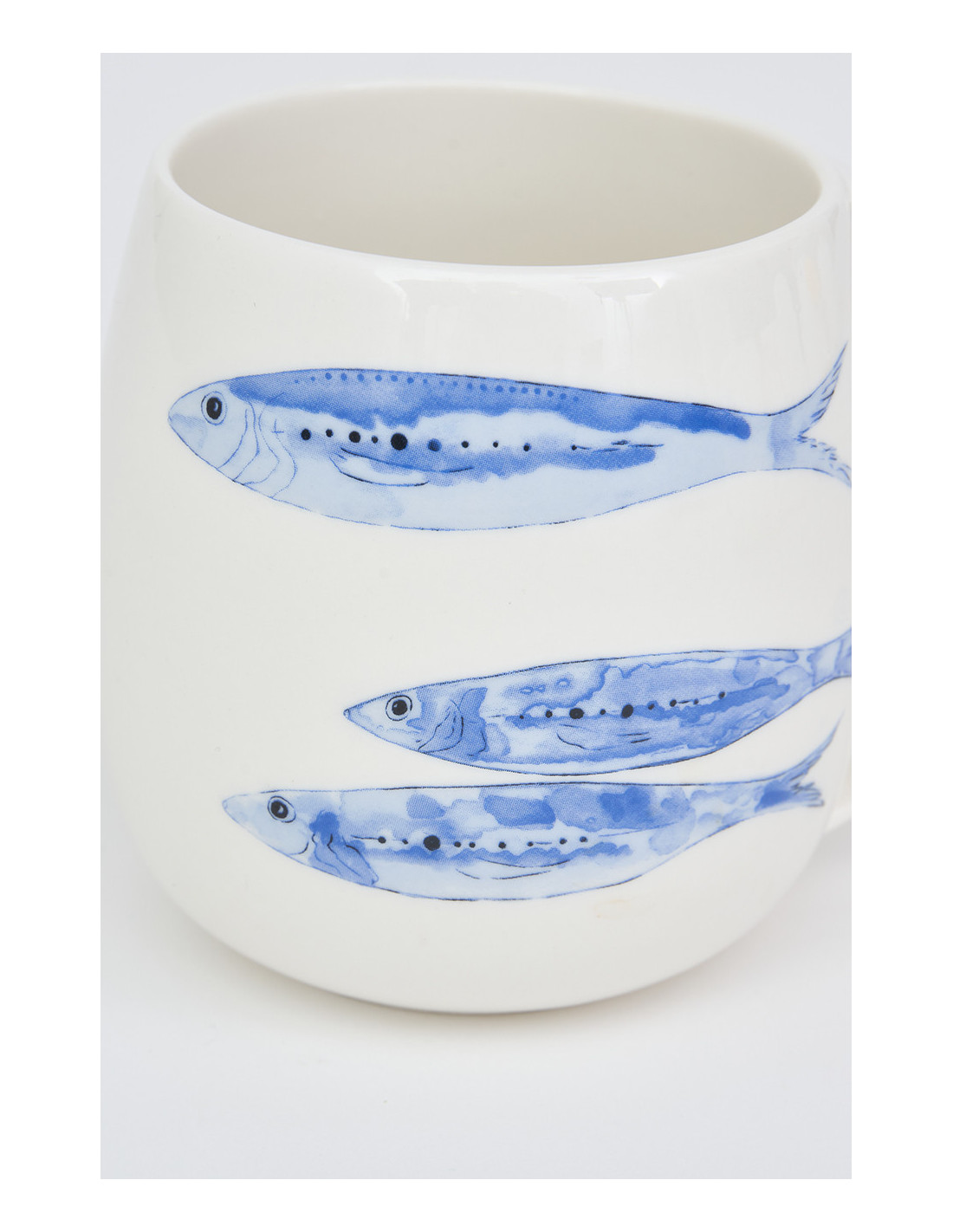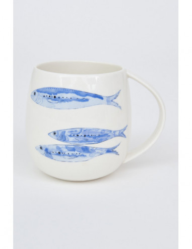 Taza de cerámica con ilustraciones de peces en tonos suaves. Su diseño redondo y su combinación de colores transmiten un aire relajante. Perfecta para café, té o infusiones.