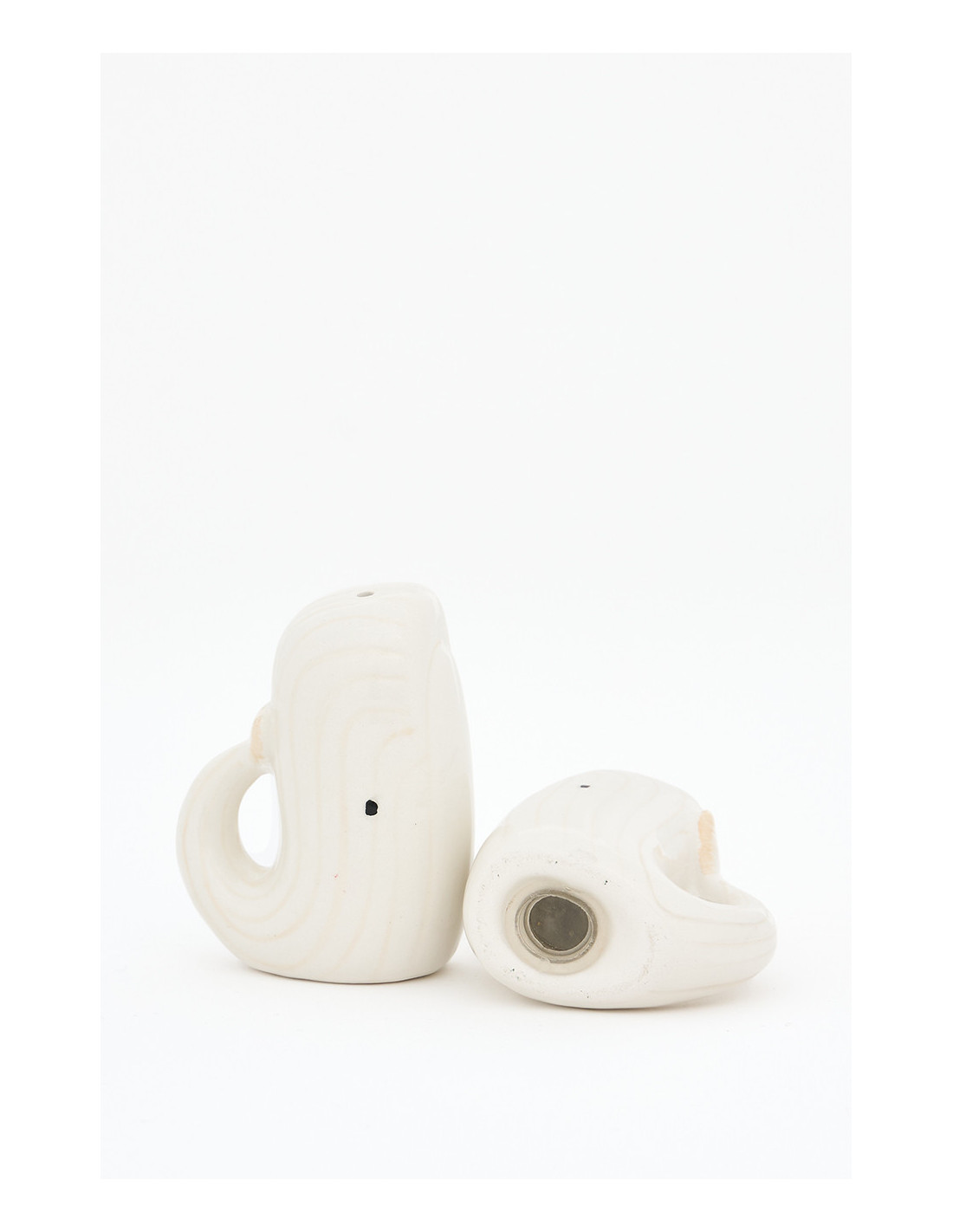 Este encantador set de salero y pimentero ballena está elaborado en dolomita, un tipo de cerámica de alta calidad que se caracteriza por su durabilidad y acabado fino. Cada pieza presenta una silueta cuidadosamente modelada con detalles sutiles que realzan su forma marina.