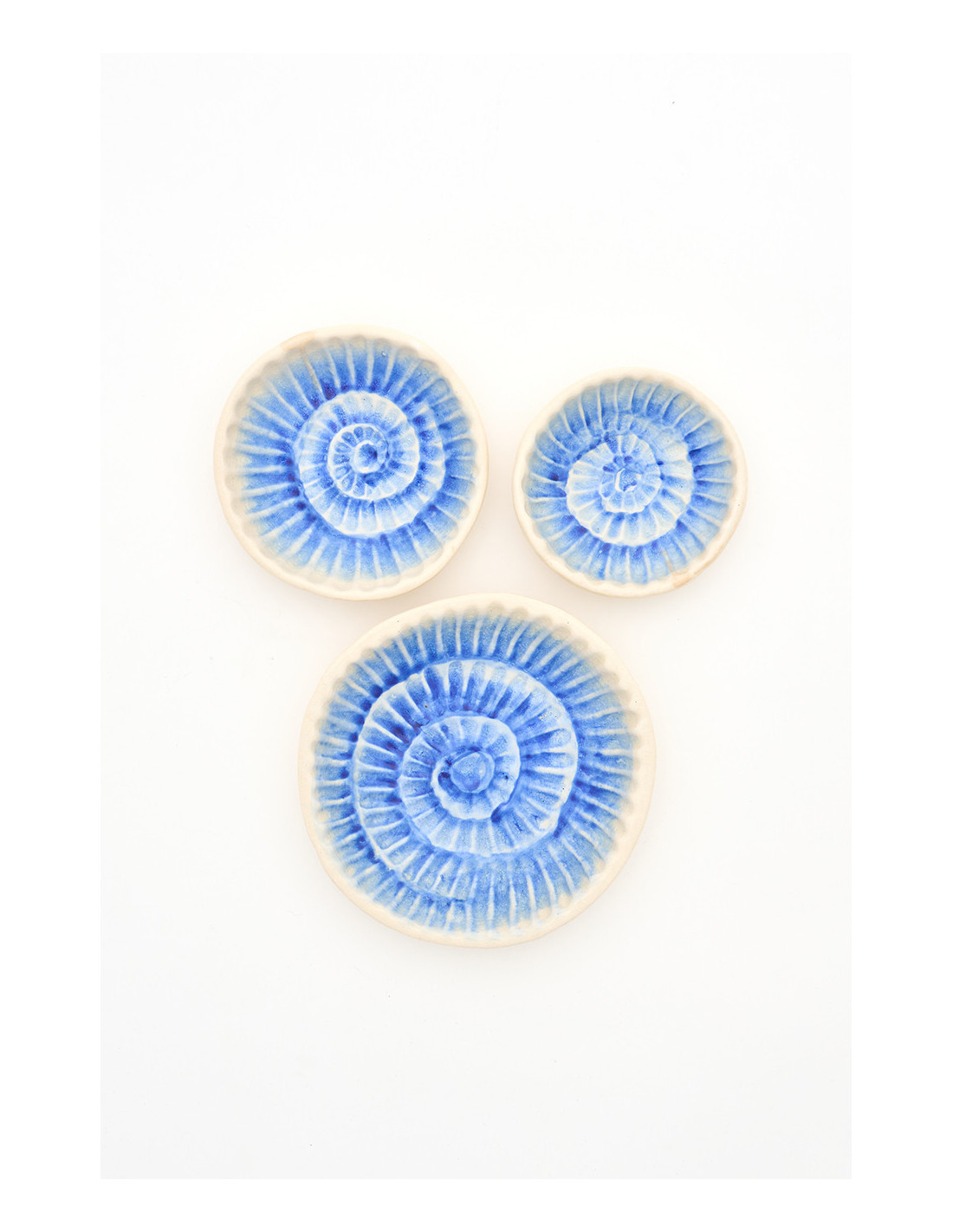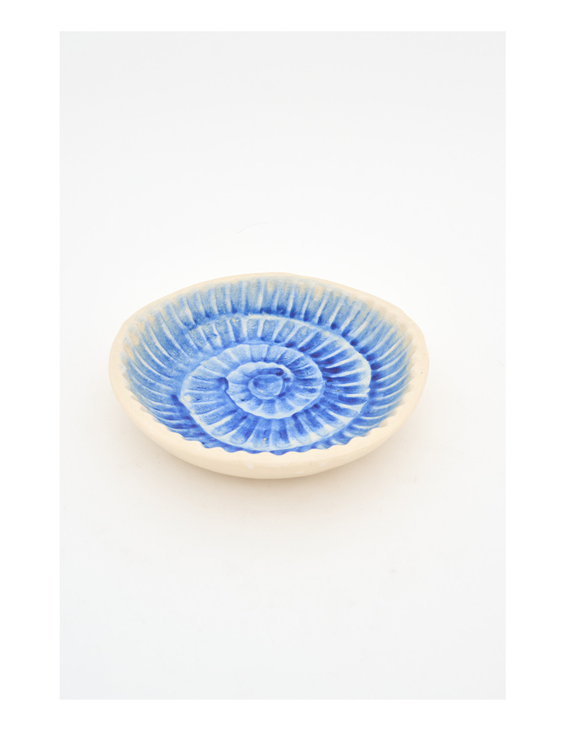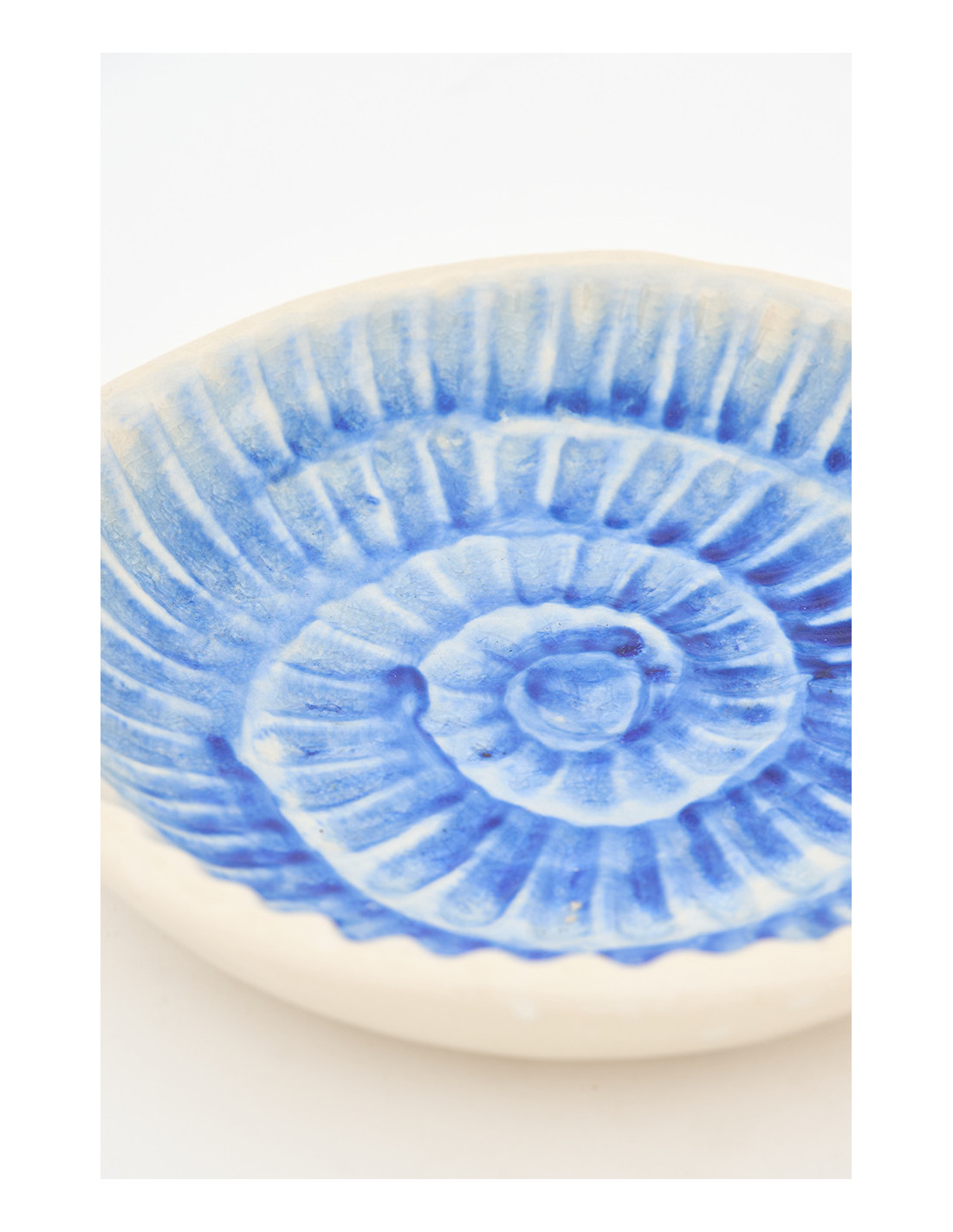 Este bol de cerámica de gran tamaño destaca por su caracola azul, cuya forma y matices parecen cobrar vida. Su acabado artesanal y su diseño en relieve aportan profundidad y realismo.