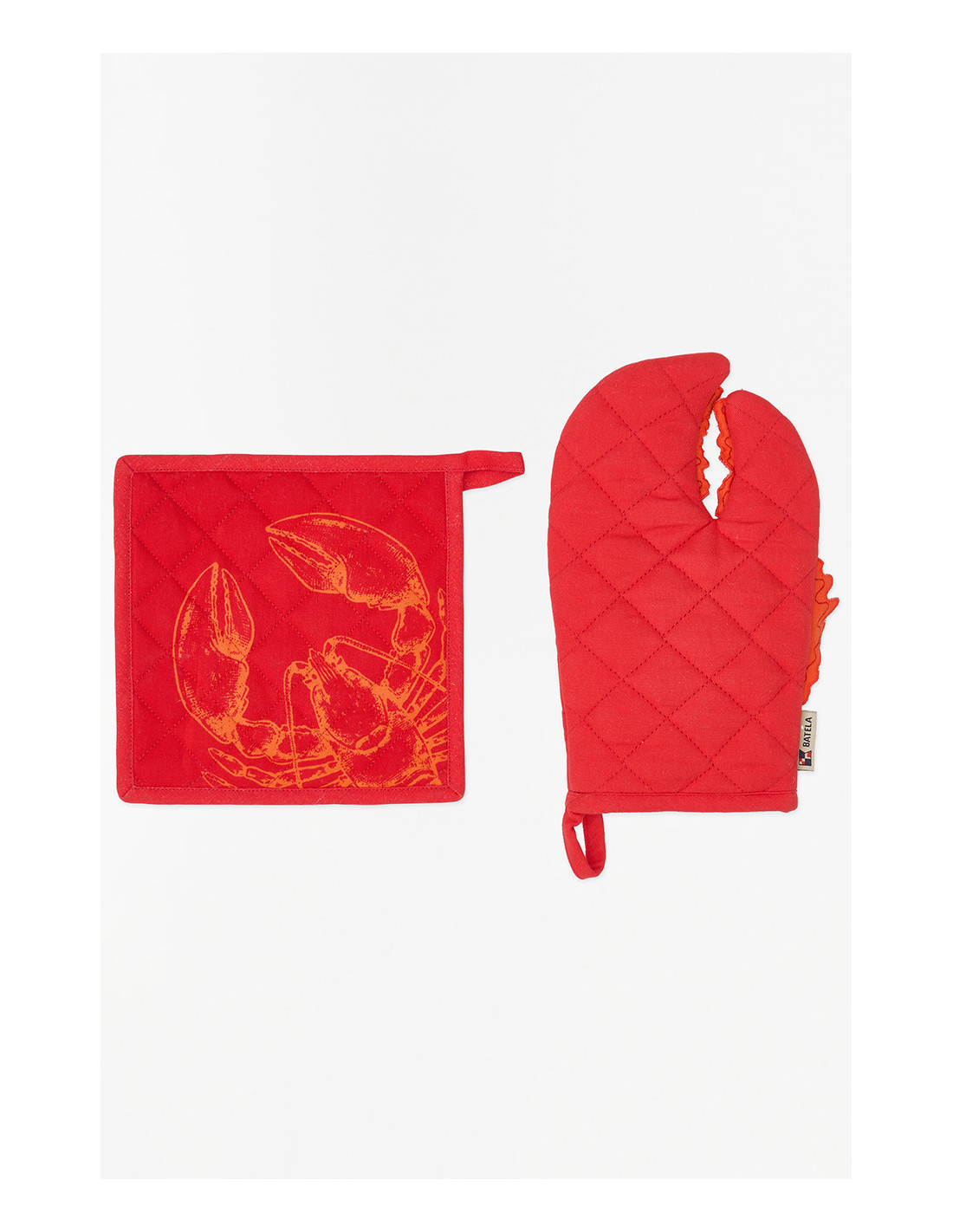 Funcionales y decorativos, este guante y agarradera de cocina están elaborados con materiales resistentes al calor, ideales para el uso diario. Su diseño con langosta en rojo intenso sobre fondo claro evoca el mar y aporta frescura a tu espacio.
