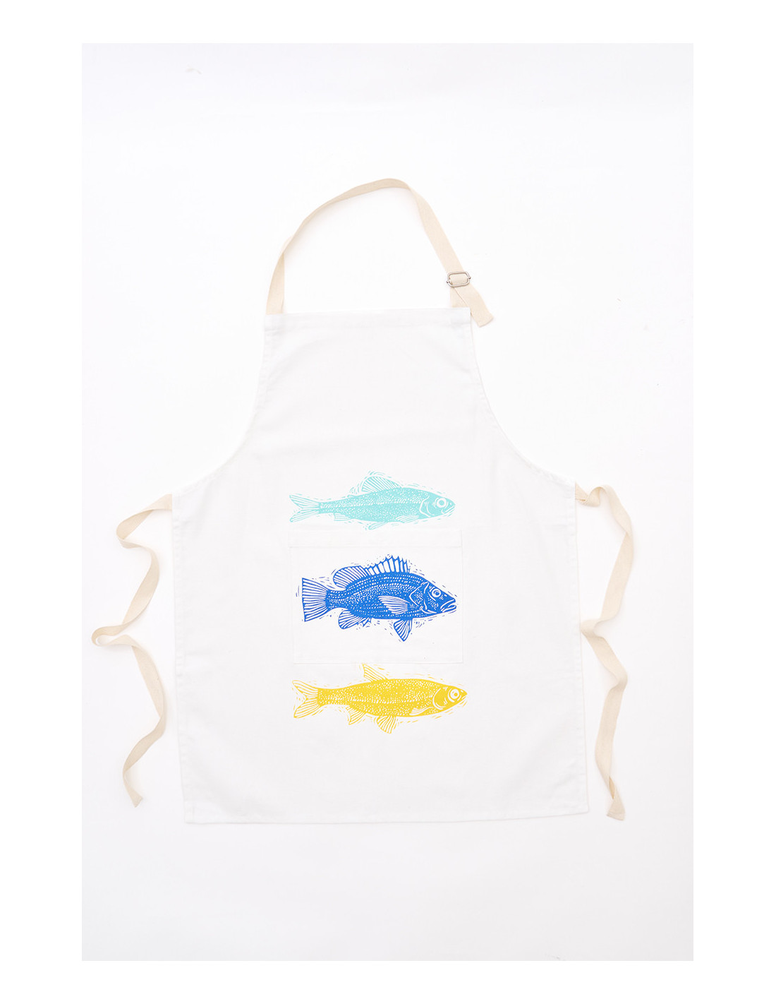 Este precioso delantal está confeccionado en algodón Drill, un material grueso, suave al tacto y altamente duradero, ideal para acompañarte en tus tareas culinarias. Los diseños disponibles que incluyen figuras pintorescas como peces en tonos alegres, cangrejos en rojo intenso, langostas detalladas o simpáticas gaviotas están cuidadosamente ilustrados para resaltar sobre el fondo natural del tejido.