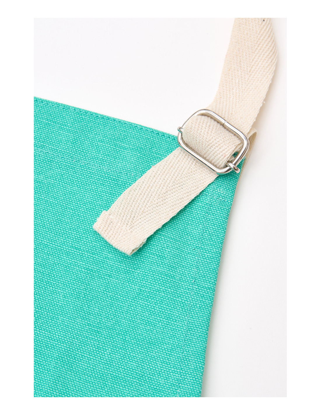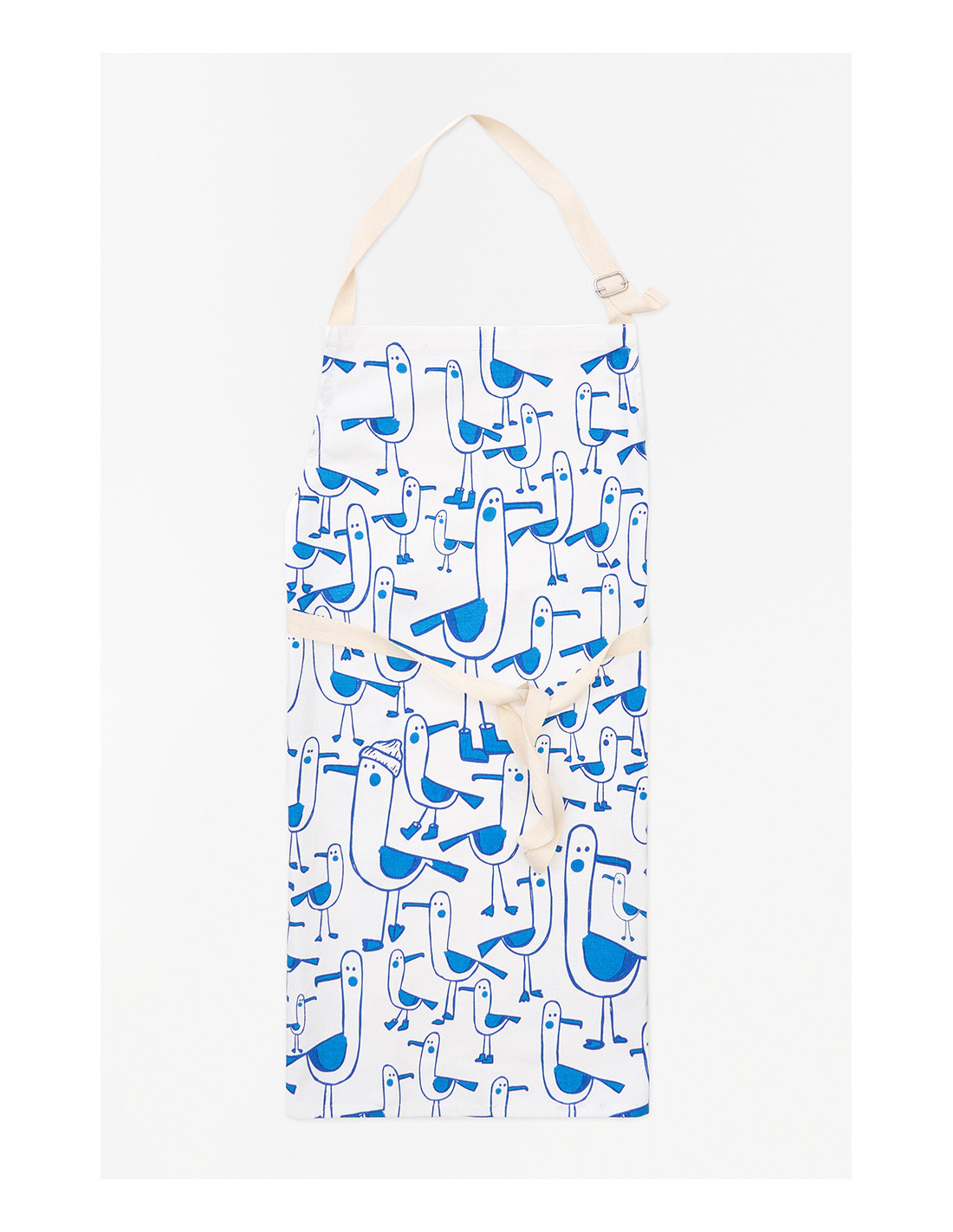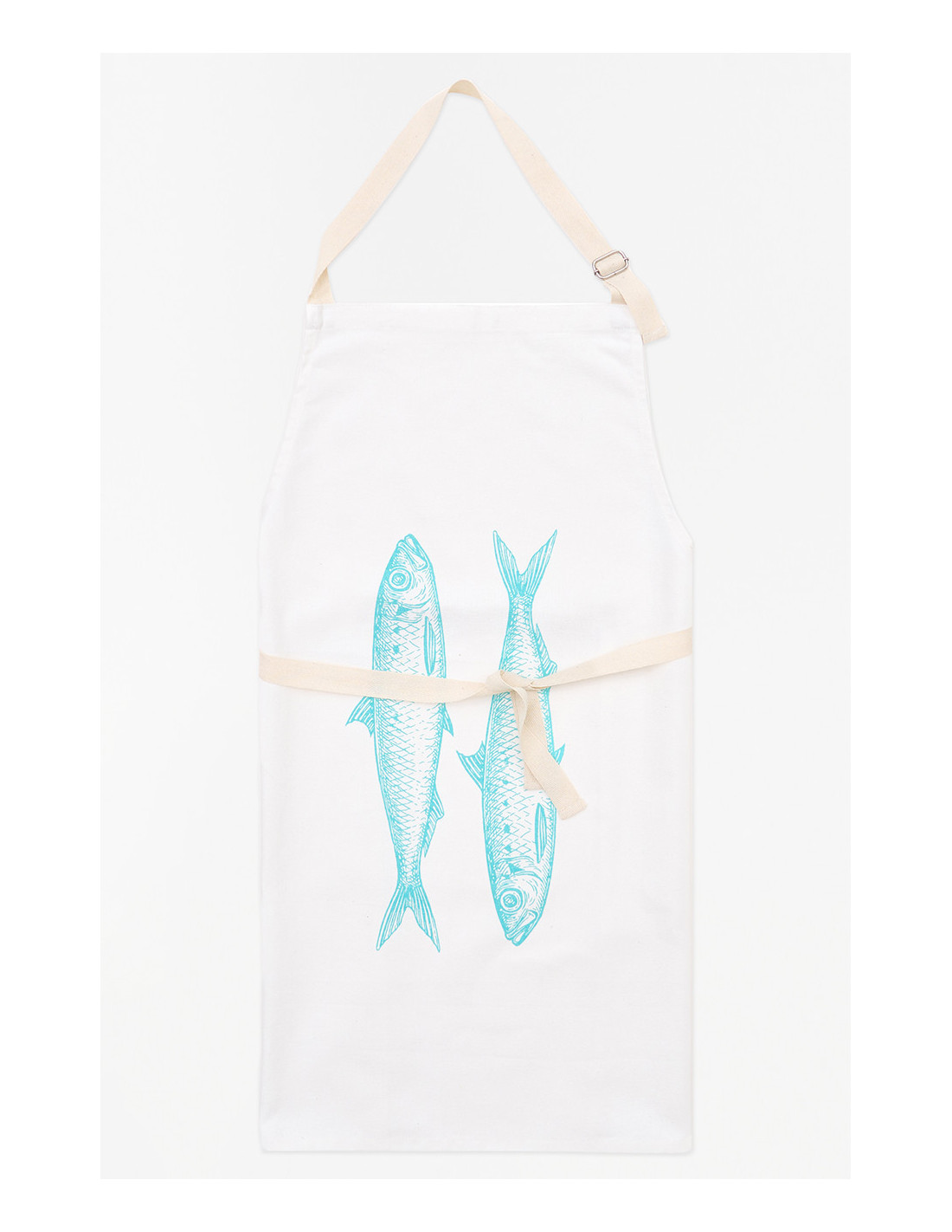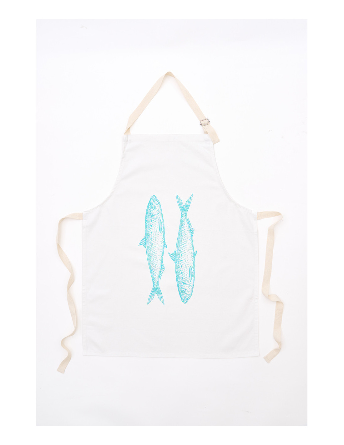 Es completamente ajustable en la parte del cuello, lo que permite adaptarlo con facilidad a cualquier persona, y se ata cómodamente con dos tirantes de color crema natural que combinan a la perfección con su estilo. Más allá de su funcionalidad, es también una pieza decorativa encantadora para cocinas con espíritu costero o marinero.