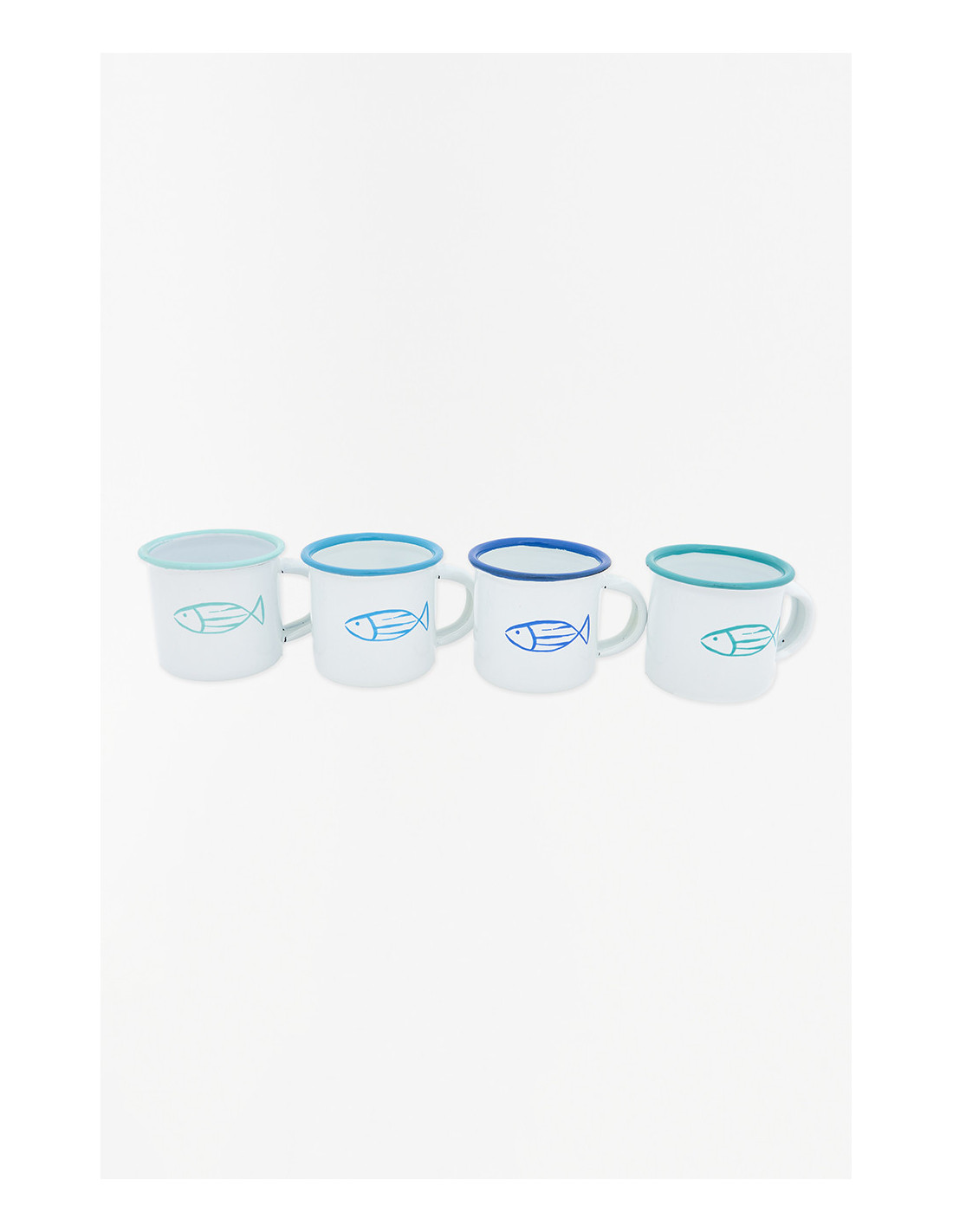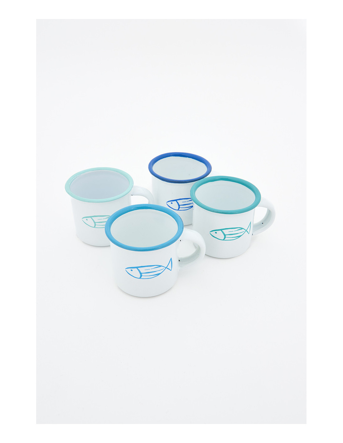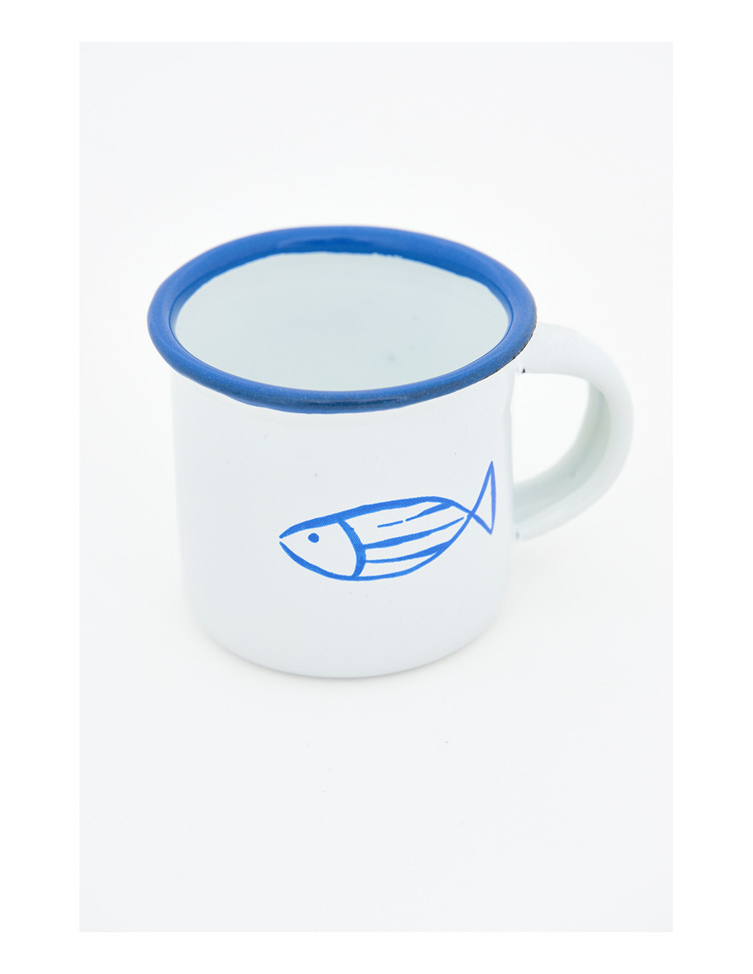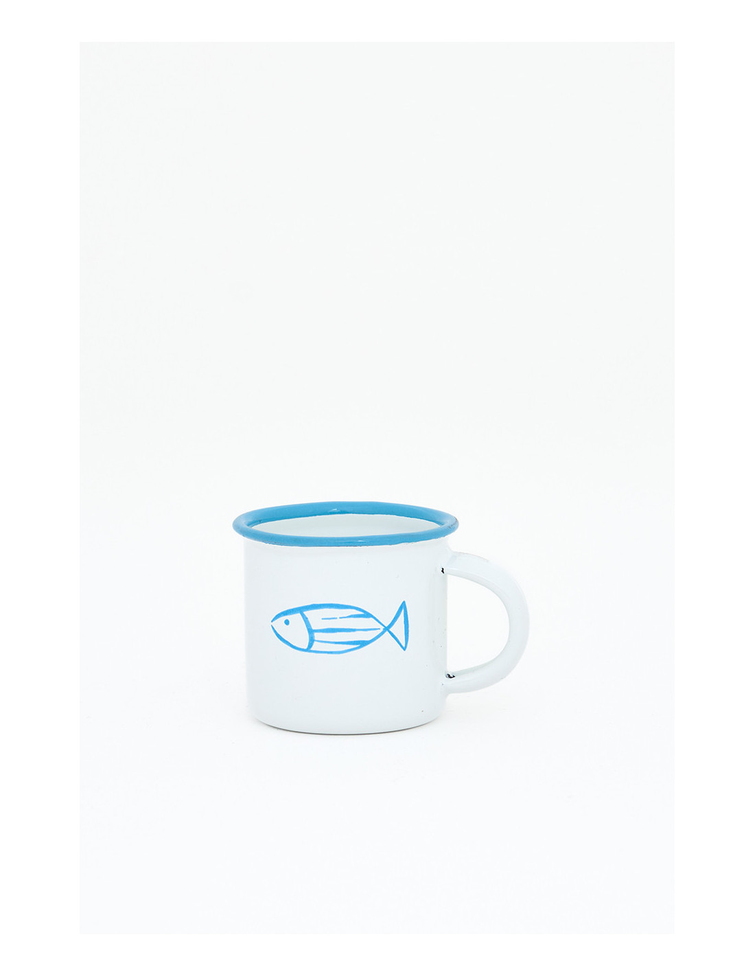Resistente y ligero, este mini mug esmaltado es perfecto para un café corto. Su diseño con pez y bordes en tonos marinos aporta un toque náutico encantador.