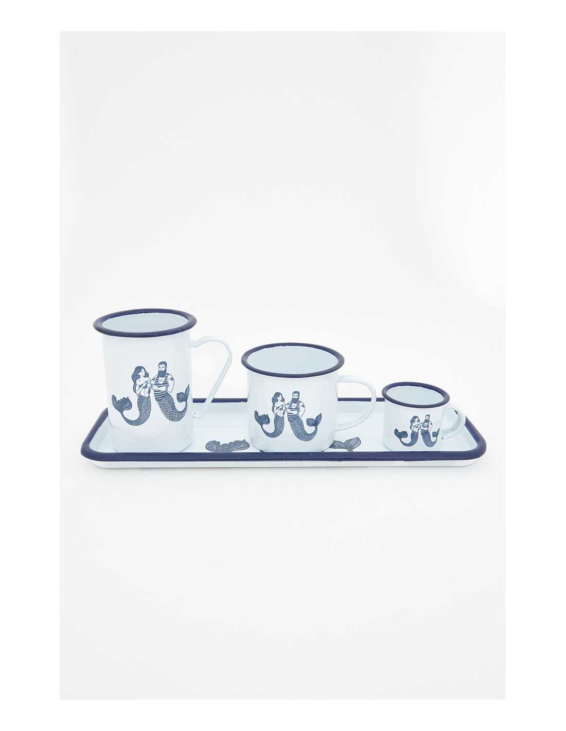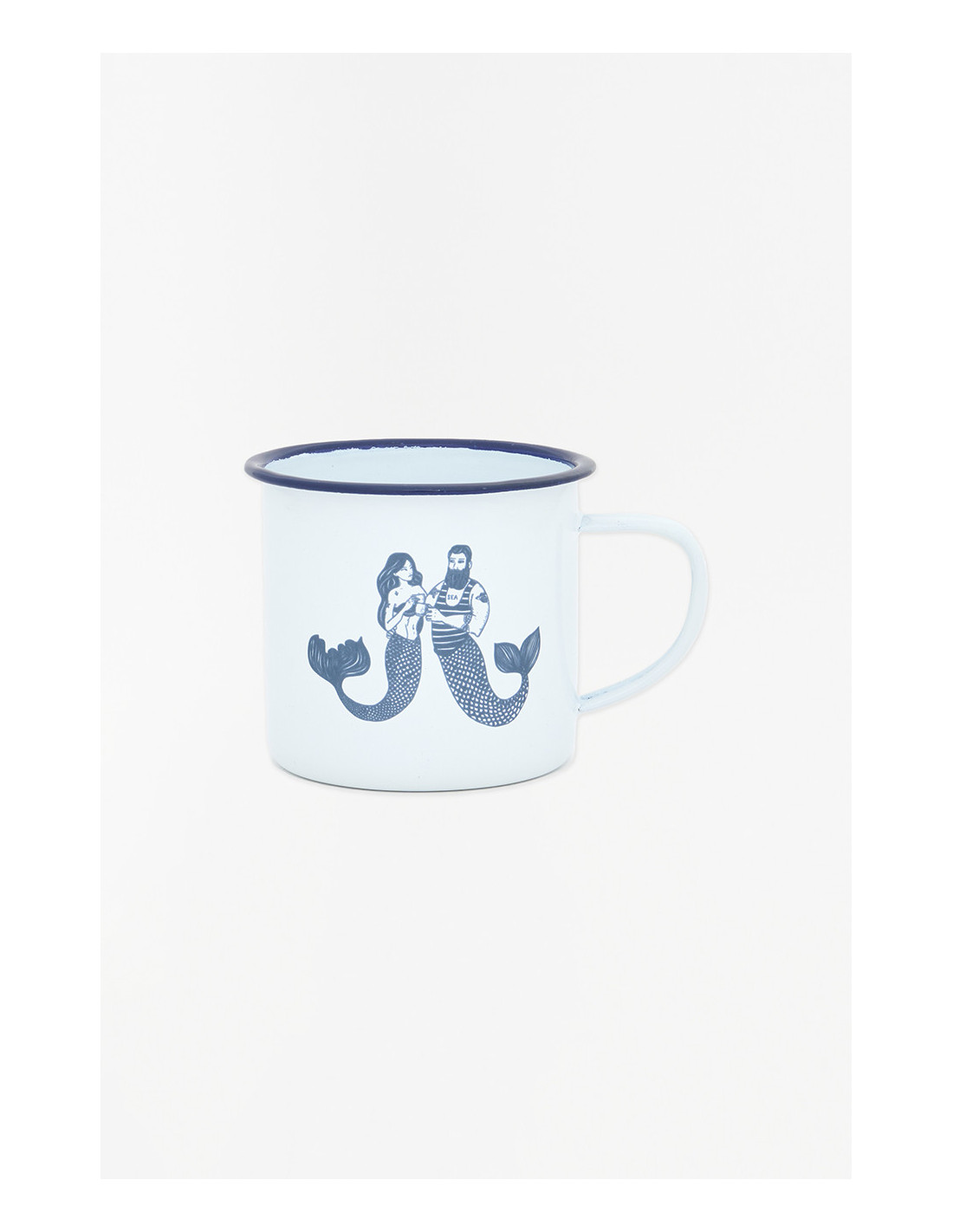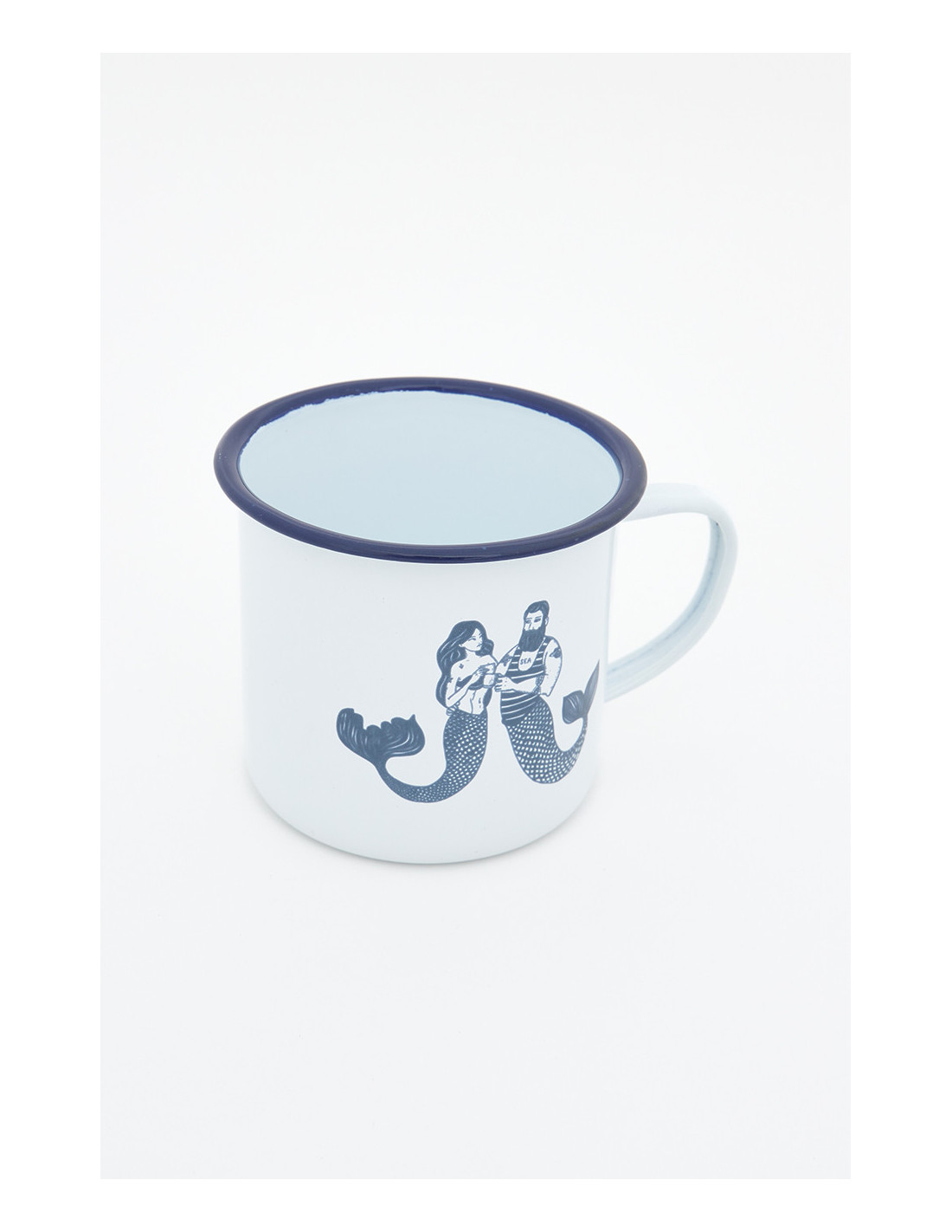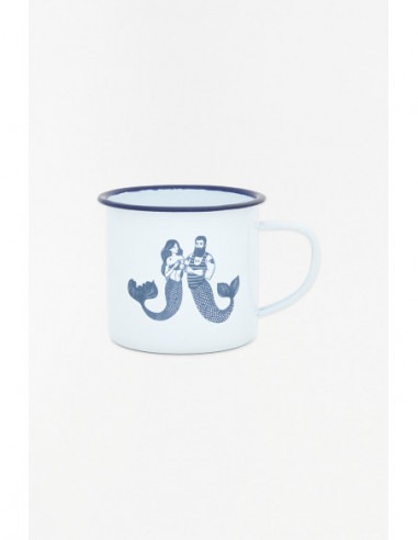 Disfruta de tus momentos de calma con esta taza de metal esmaltado de inspiración náutica, adornada con delicadas ilustraciones de sirenas en tonos azulados. Su tamaño es perfecto para cualquier tipo de bebida, mientras que su fabricación en metal esmaltado asegura resistencia a golpes y altas temperaturas.