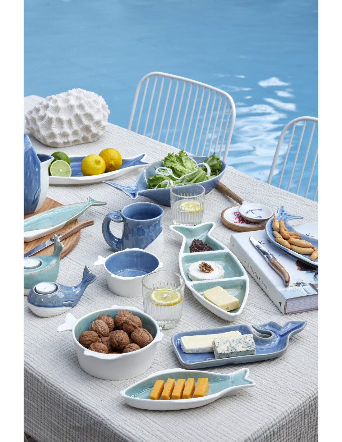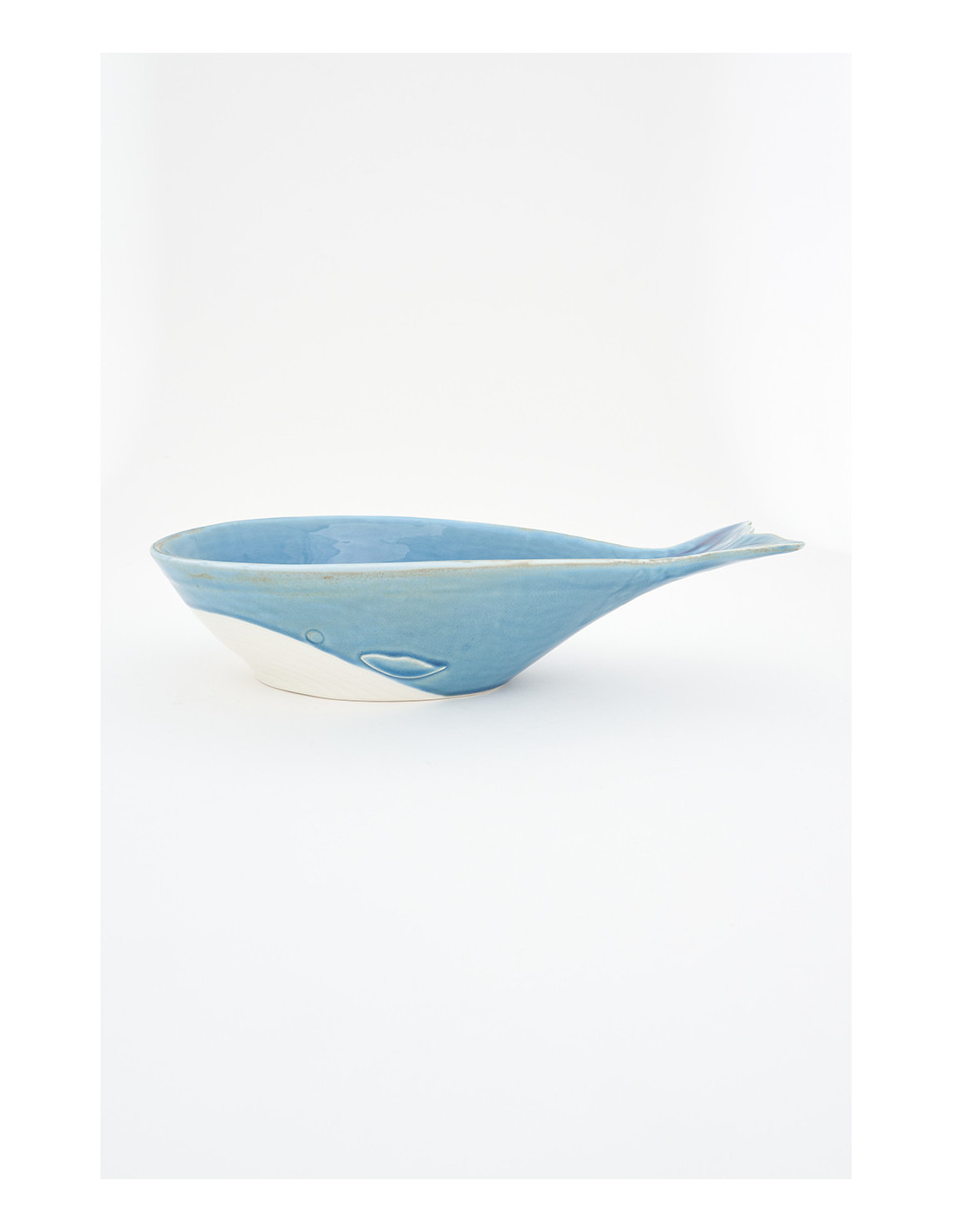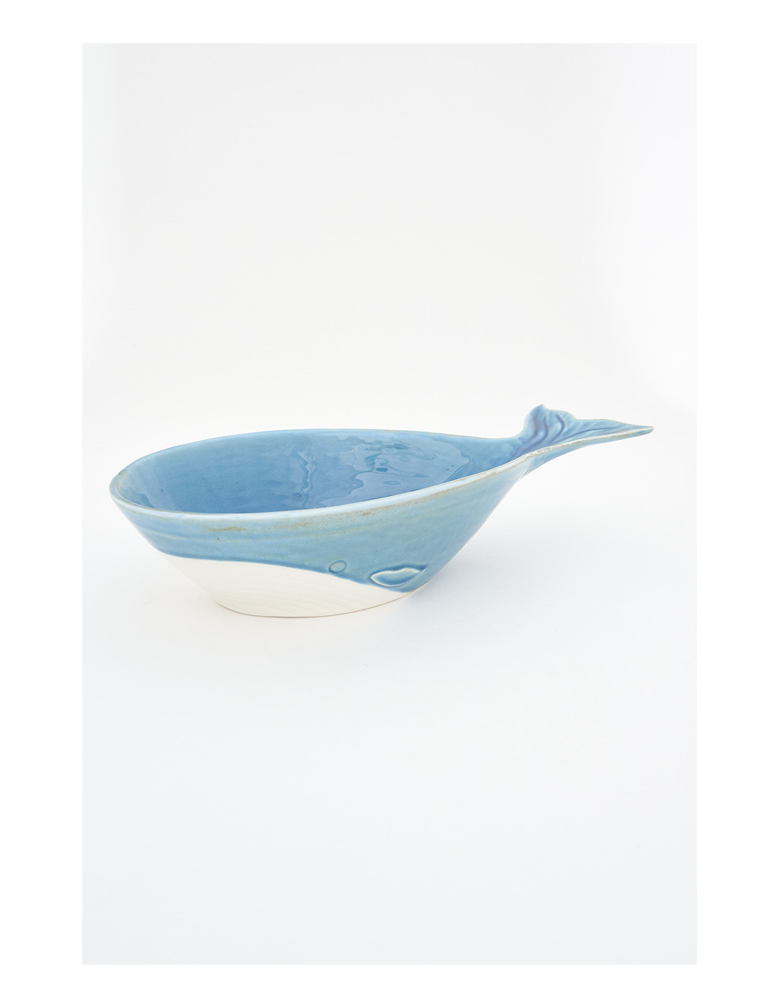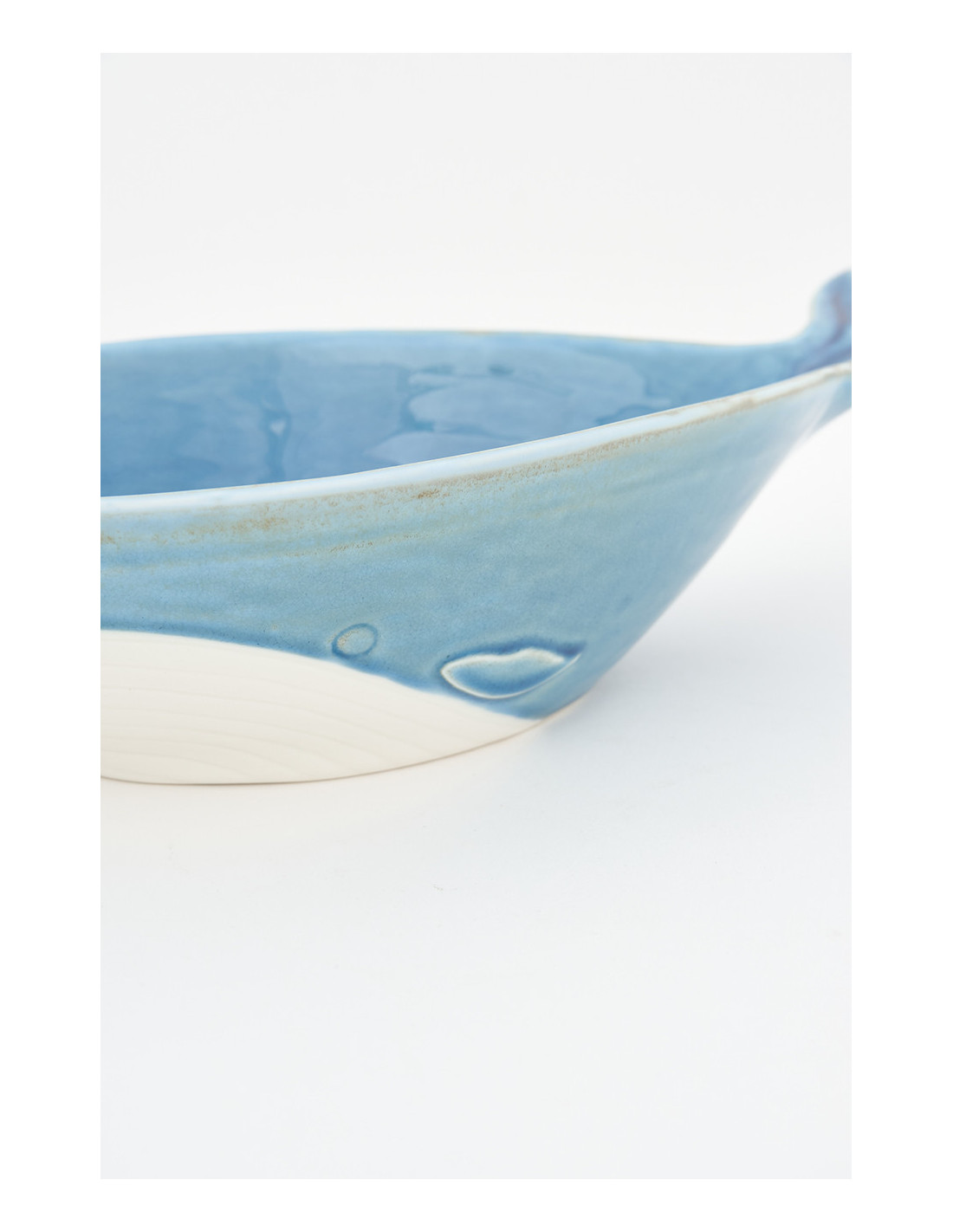 Bol hondo con ballena en tonos azulinos es perfecto para dar un toque náutico a tu mesa. Fabricado en cerámica esmaltada, es duradero y fácil de lavar. Ideal para snacks, cremas o frutas.