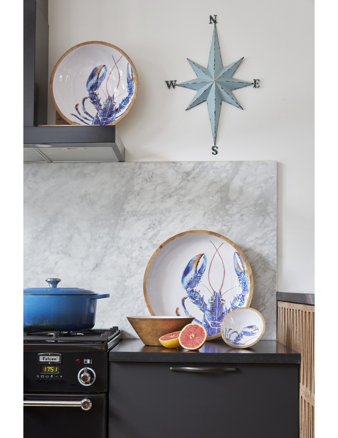 Bol de madera esmaltada con diseño de langosta