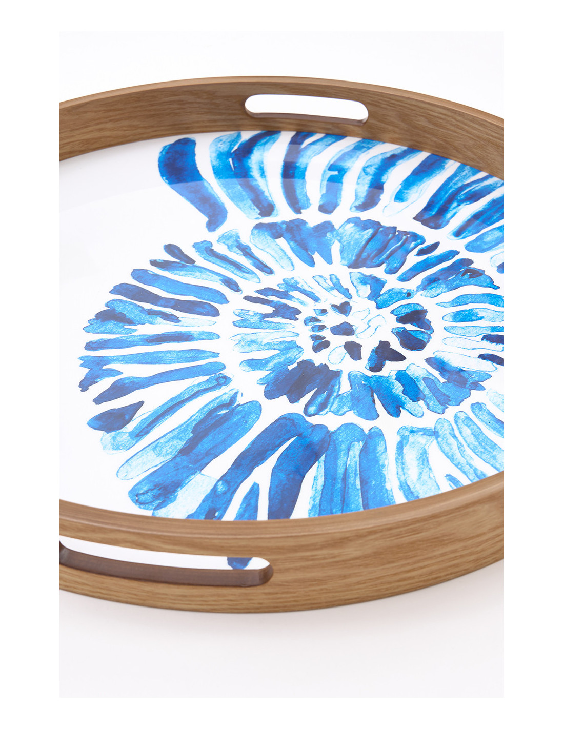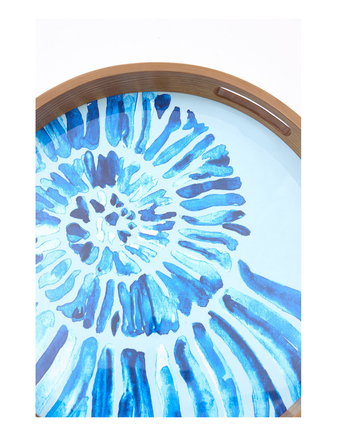 Con diseño de caracola y asas laterales, esta bandeja esmaltada en madera es perfecta para aportar un toque costero elegante y funcional.