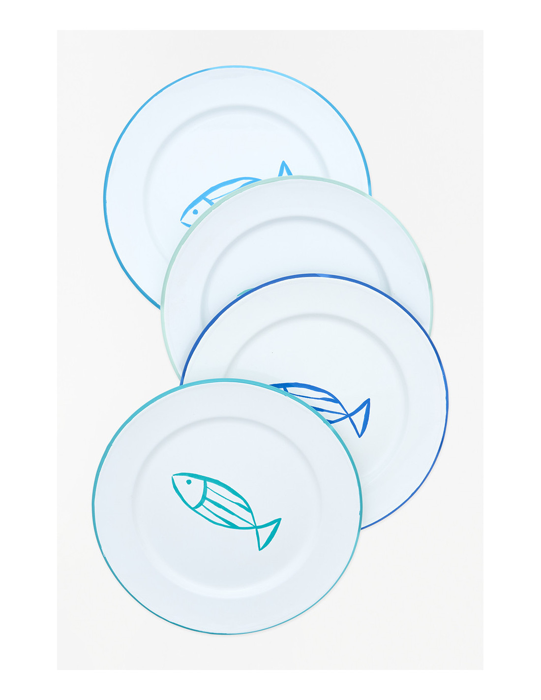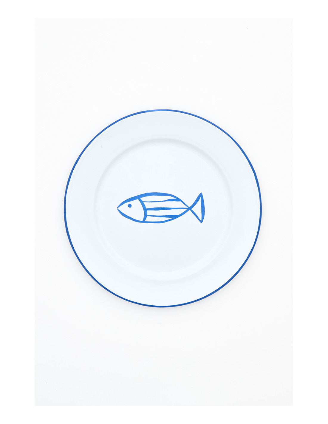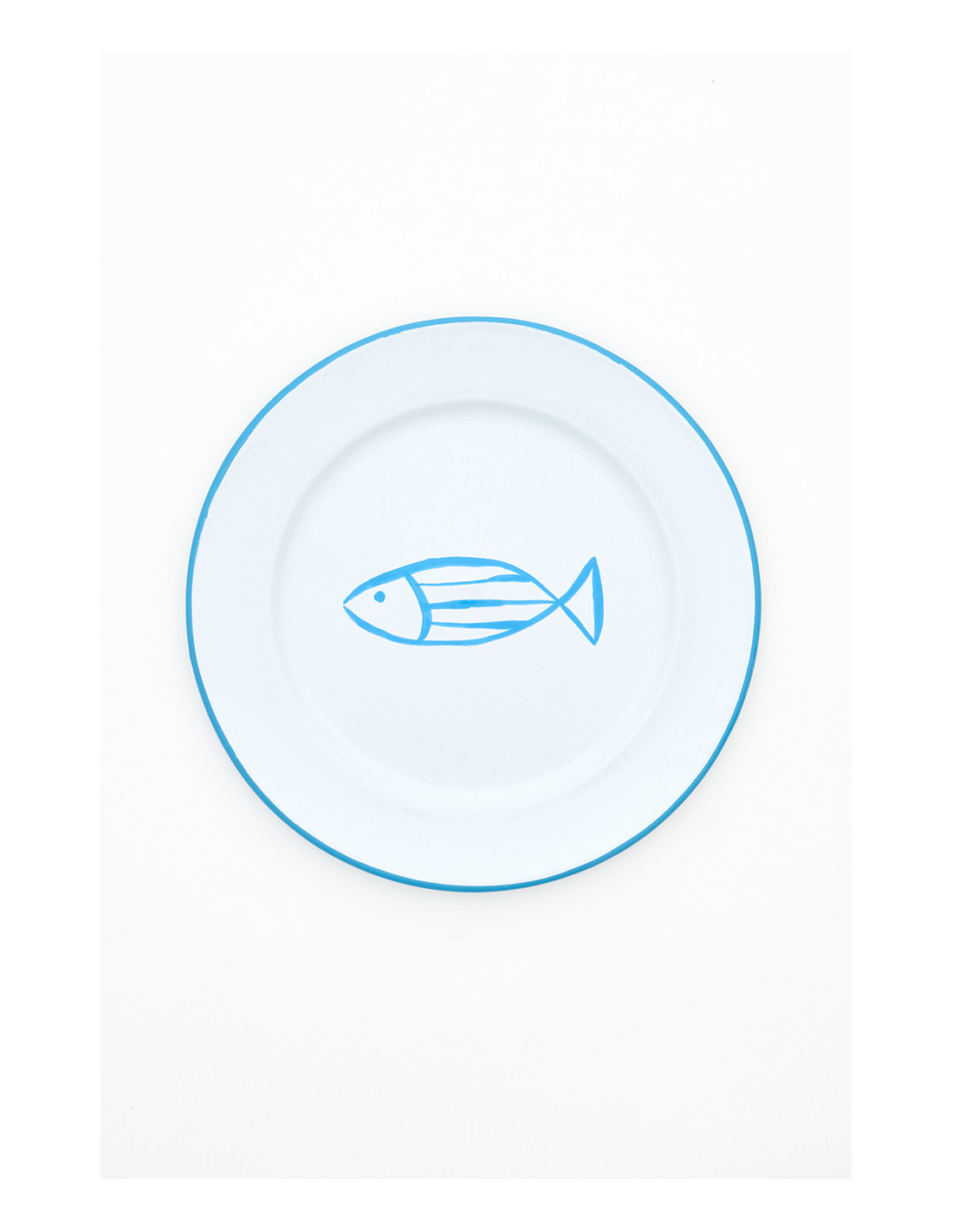Platos grandes de metal esmaltado con un pez en el centro son ideales para darle frescura a tu mesa. Disponibles en colores celeste, azul, verde y turquesa, son duraderos y fáciles de limpiar.