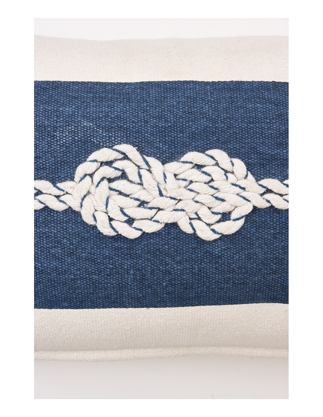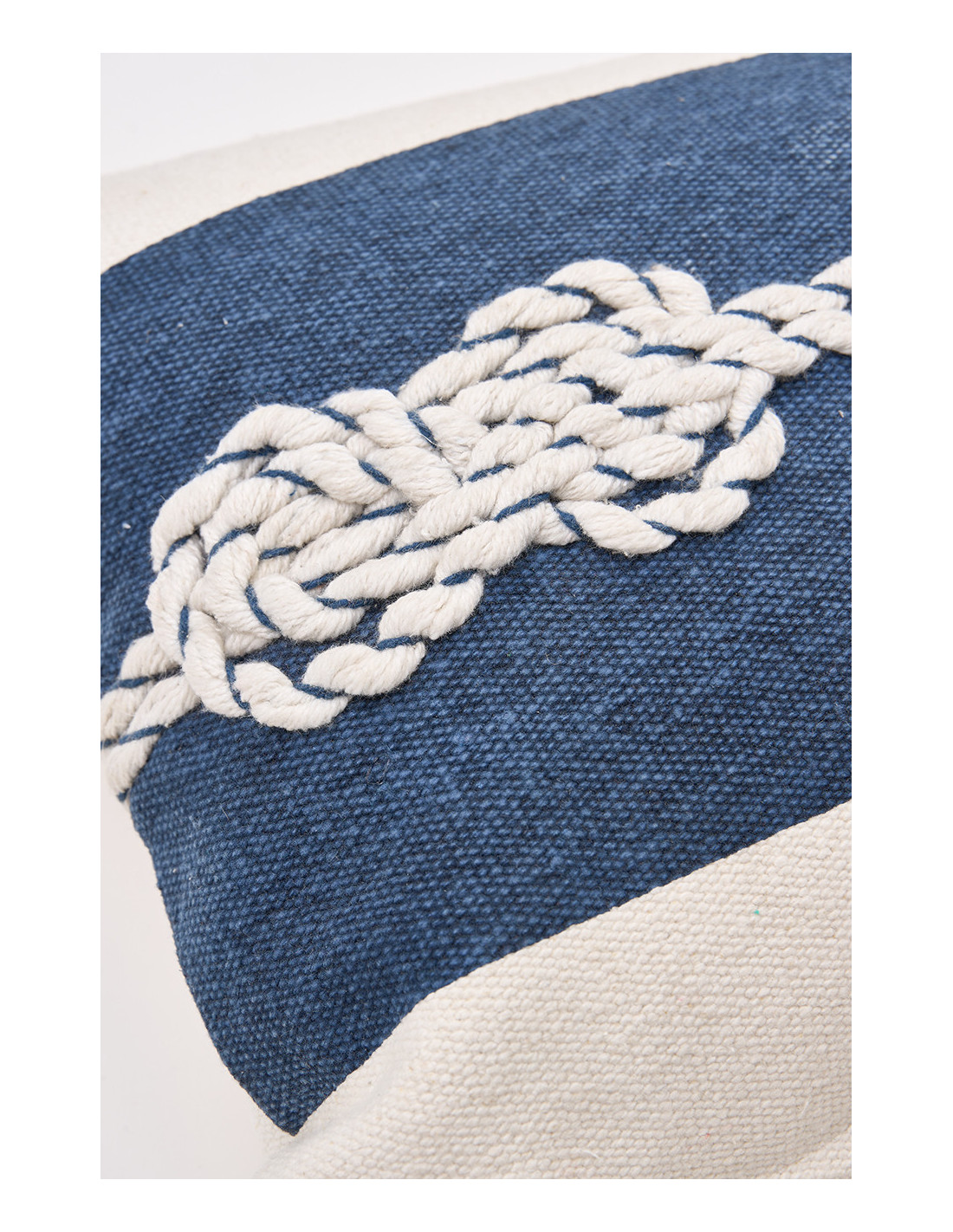 Con un estampado sobresaliente inspirado en auténticos nudos marineros, este cojín de algodón combina estética y funcionalidad en una sola pieza. Su material ofrece una textura agradable al tacto, fácil de mantener y duradera, ideal para espacios con decoración costera.