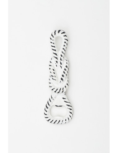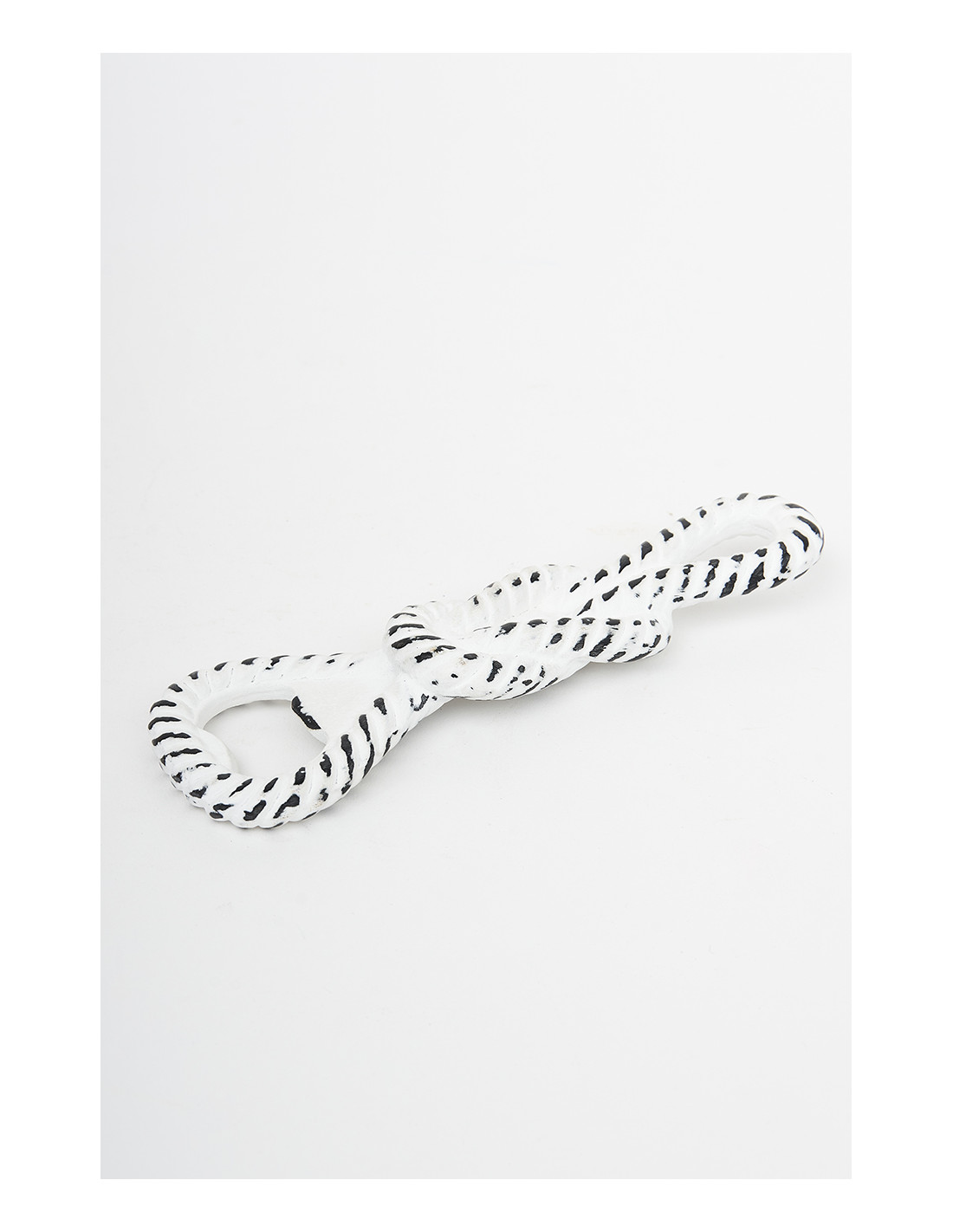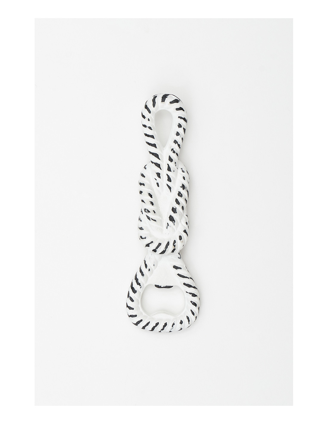 Abrebotellas en forma de nudo marinero hecho en fundición de hierro con acabado blanco decape.
