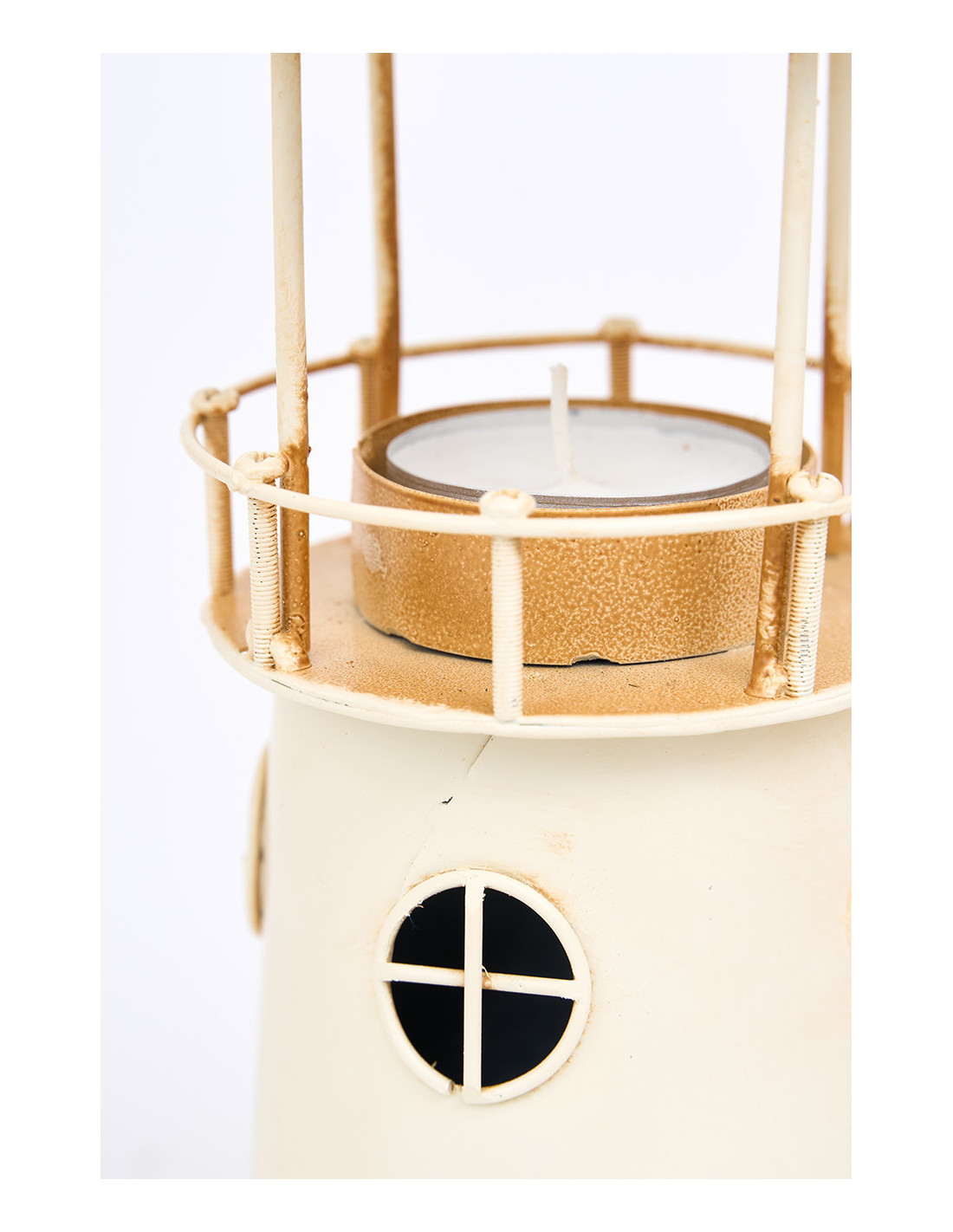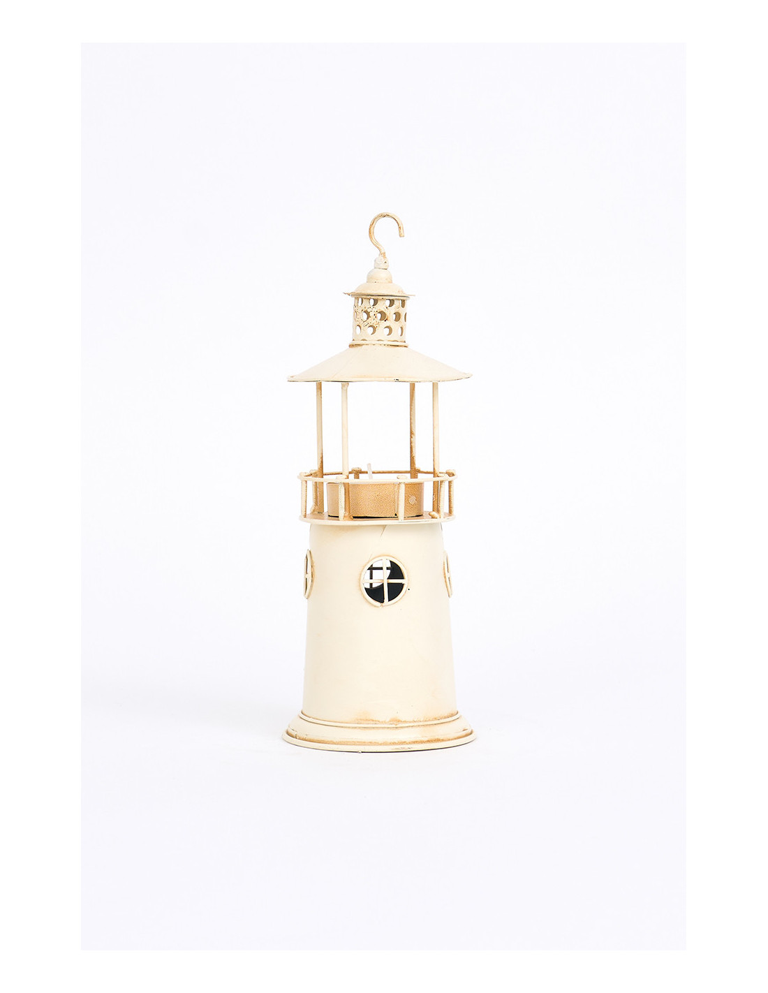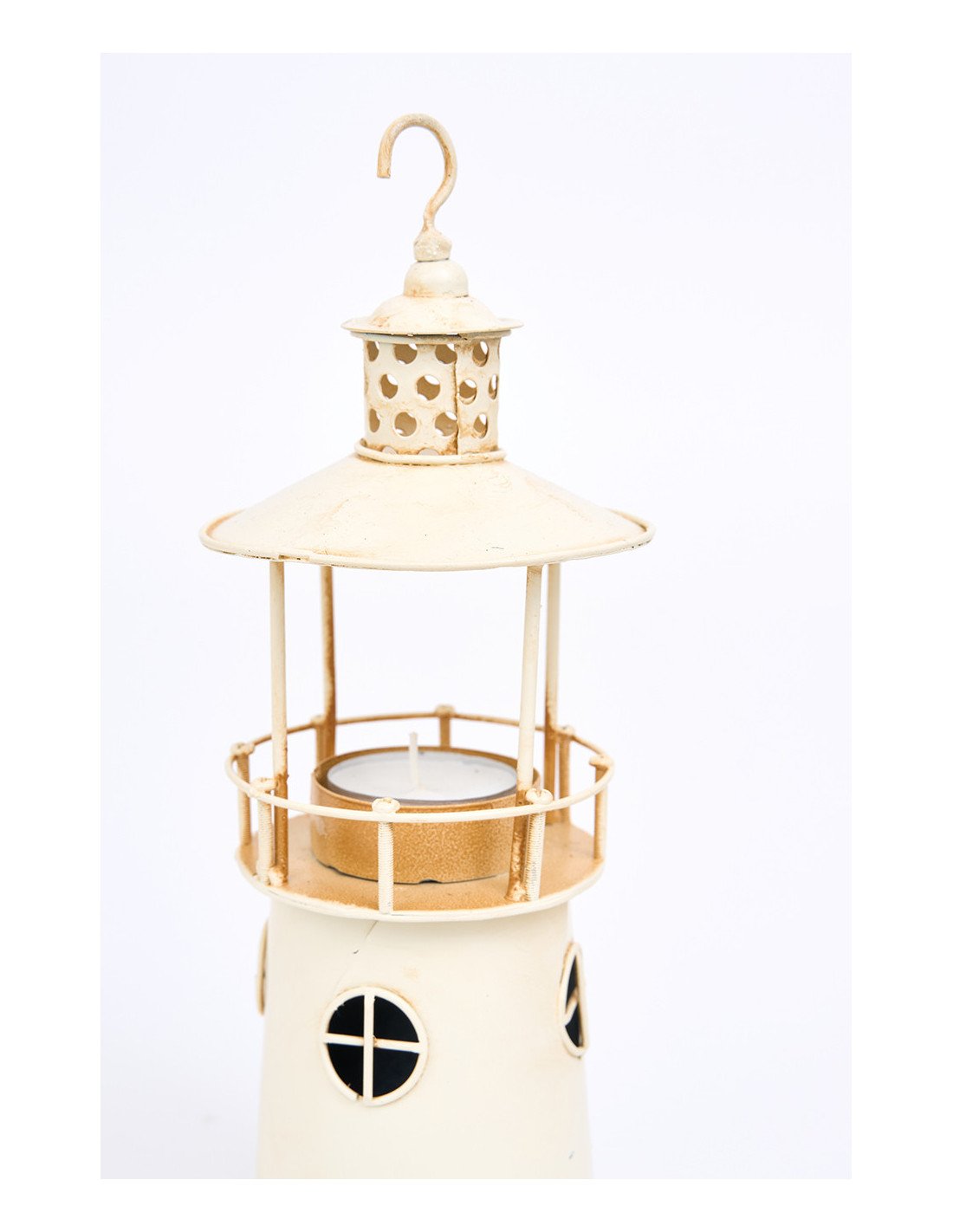 Diseño de faro en metal rústico que evoca el encanto marino. Perfecto para crear ambientes acogedores y nostálgicos. Un toque decorativo con luz suave y ambientadora.