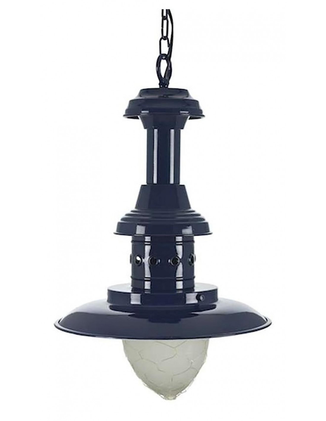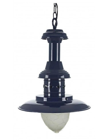 Lámpara náutica de pescador de colgar para el techo fabricada en hierro y pintada con pintura azul marino de gran durabilidad.