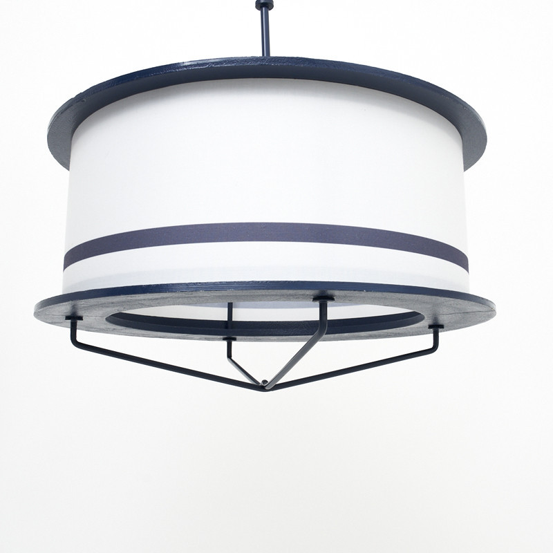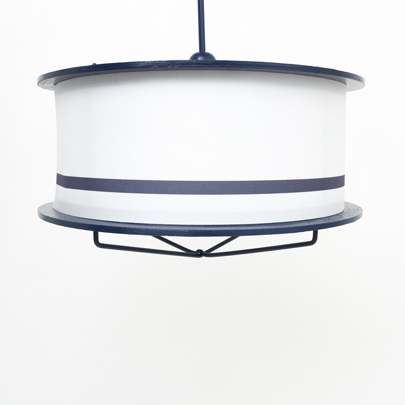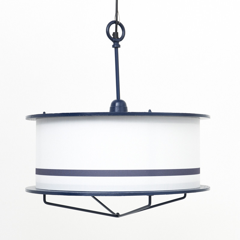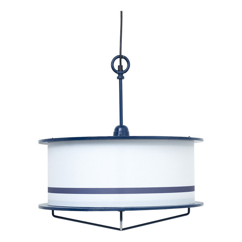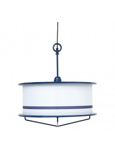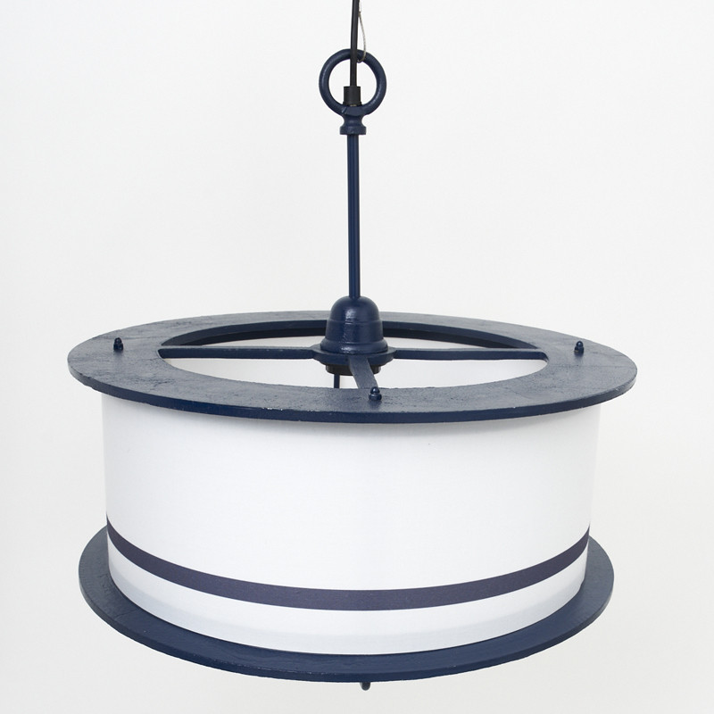Lámpara en metal decorativa con diseño vintage y grandes formas redondas. Hecha a mano en artesanía náutica con pantalla en metal, pintada en tonos marineros blanco y azul marino. Dispone de instalación eléctrica. Admite el uso de bombillas incandescentes, bombillas LED o de bajo consumo no incluidas. Perfecta para complementar la decoración marinera de una terraza, restaurante u hotel de temática marinera.