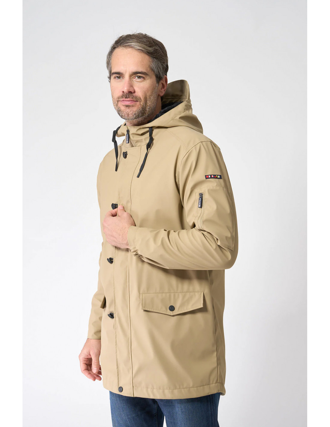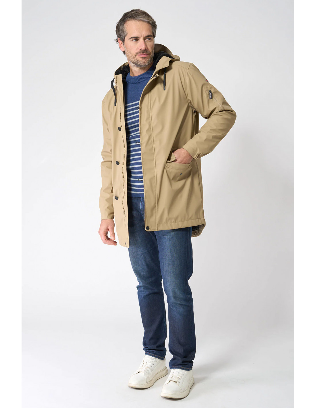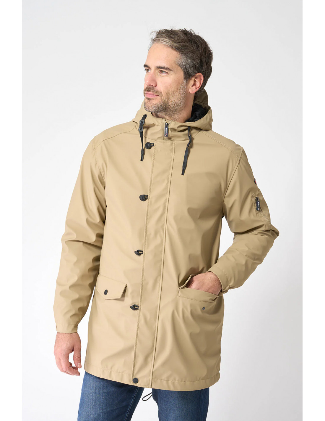Chaqueta chubasquero para hombre con borreguito en el interior.