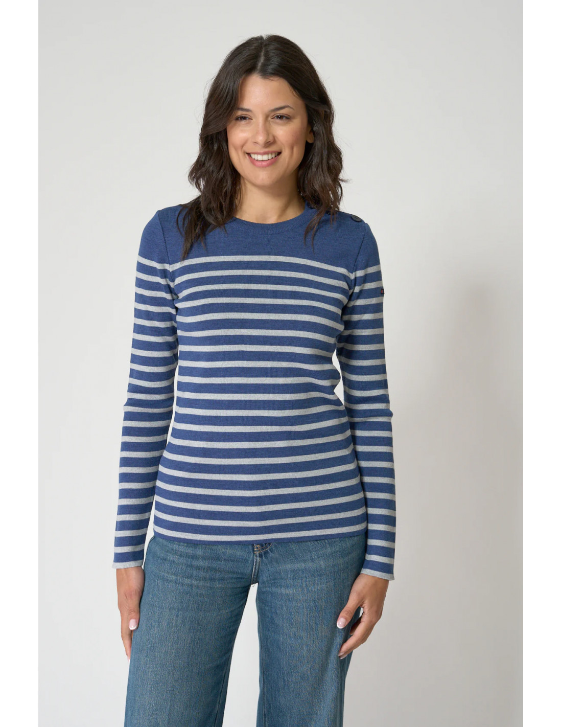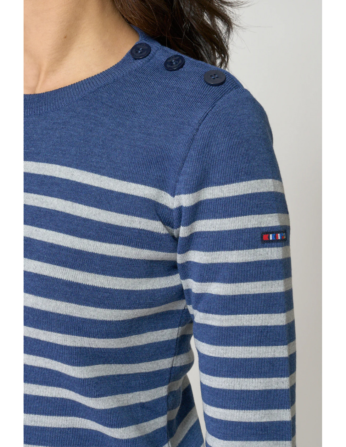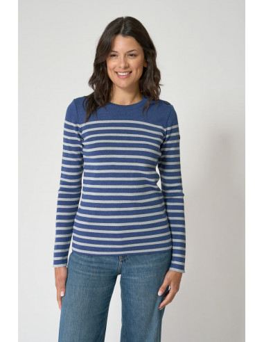 Jersey náutico de manga larga y cuello redondo para mujer, confeccionado con lana y acrílico. Prenda marinera de la reconocida marca Batela.