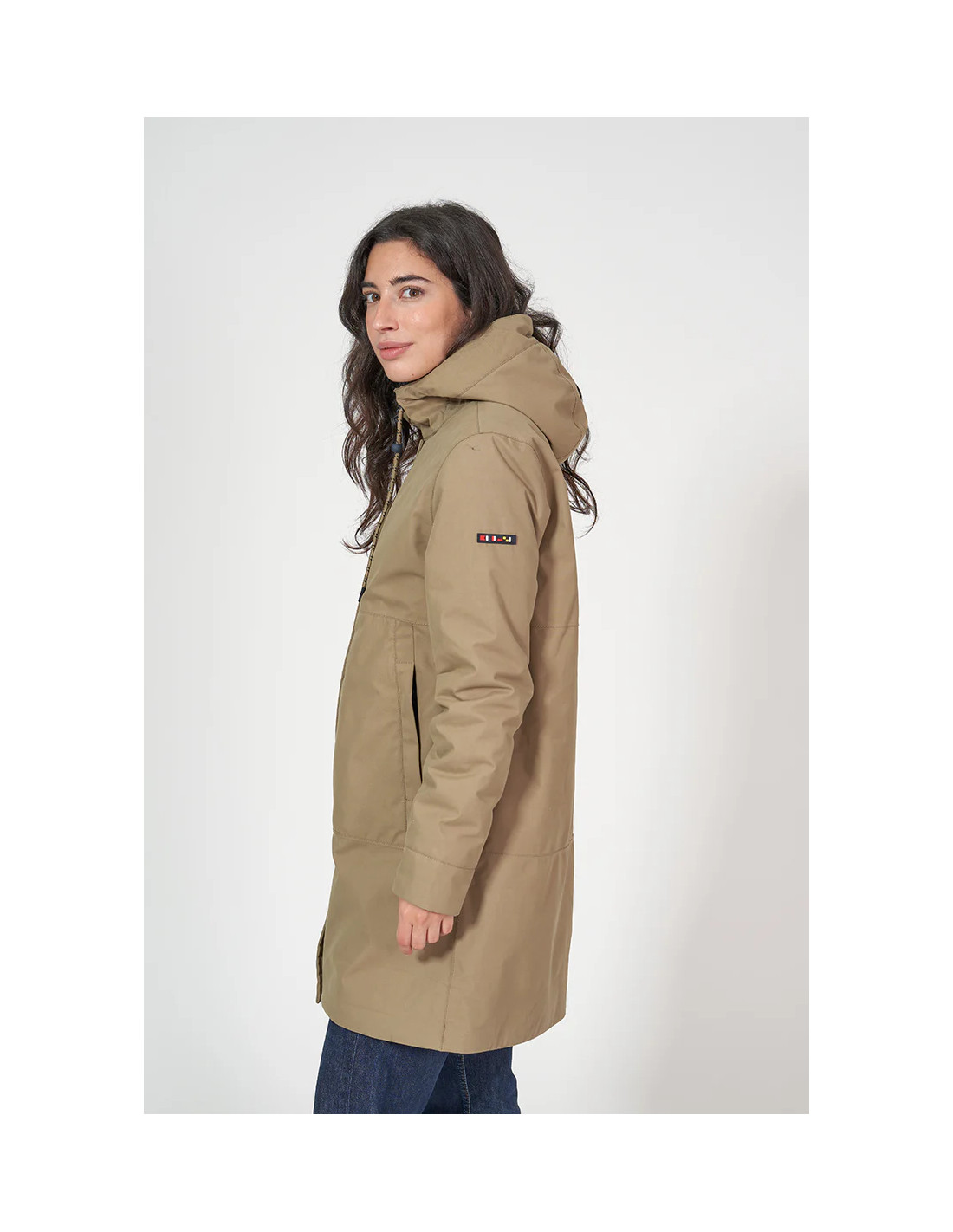 Esta chaqueta BATELA de mujer es 100% impermeable.