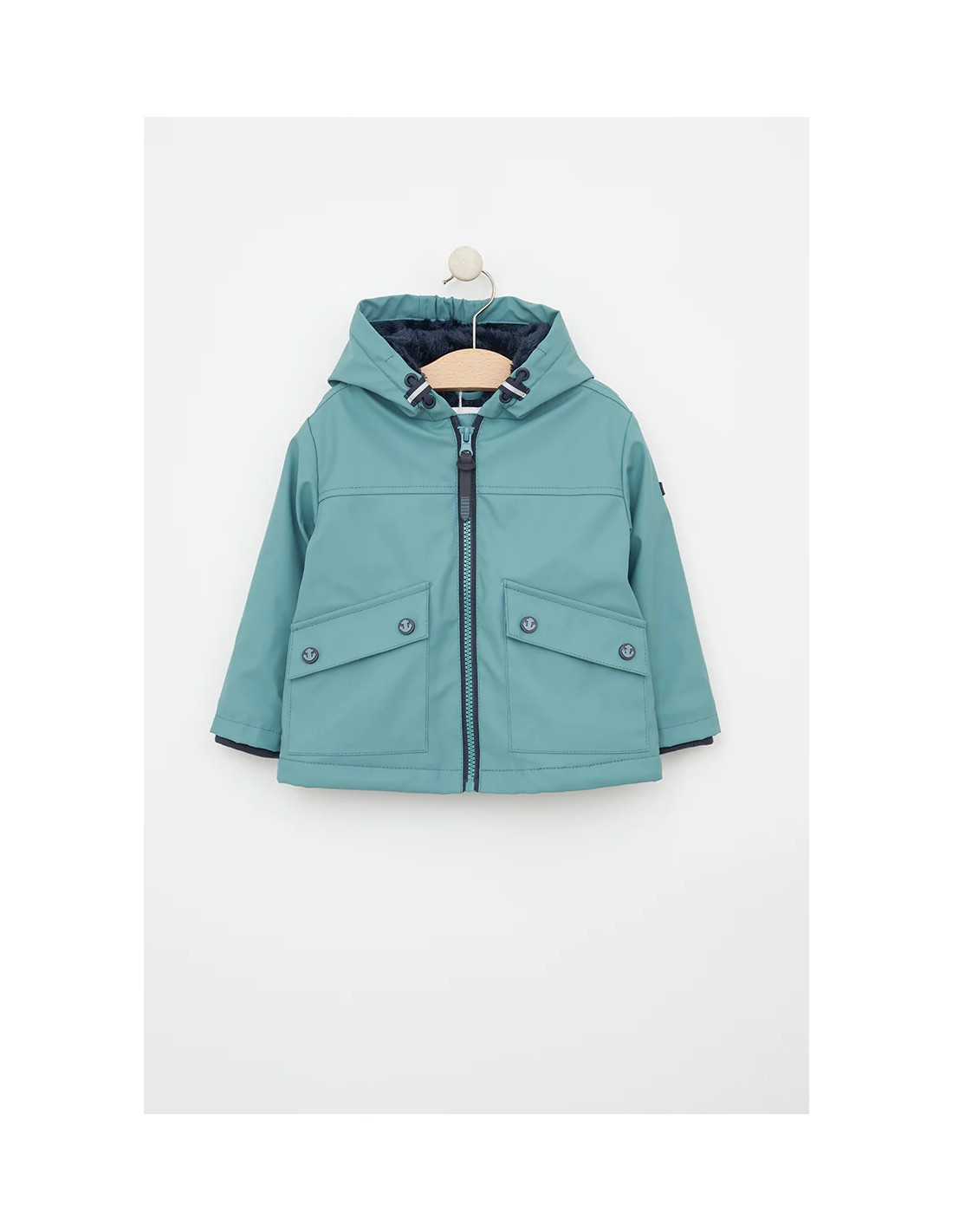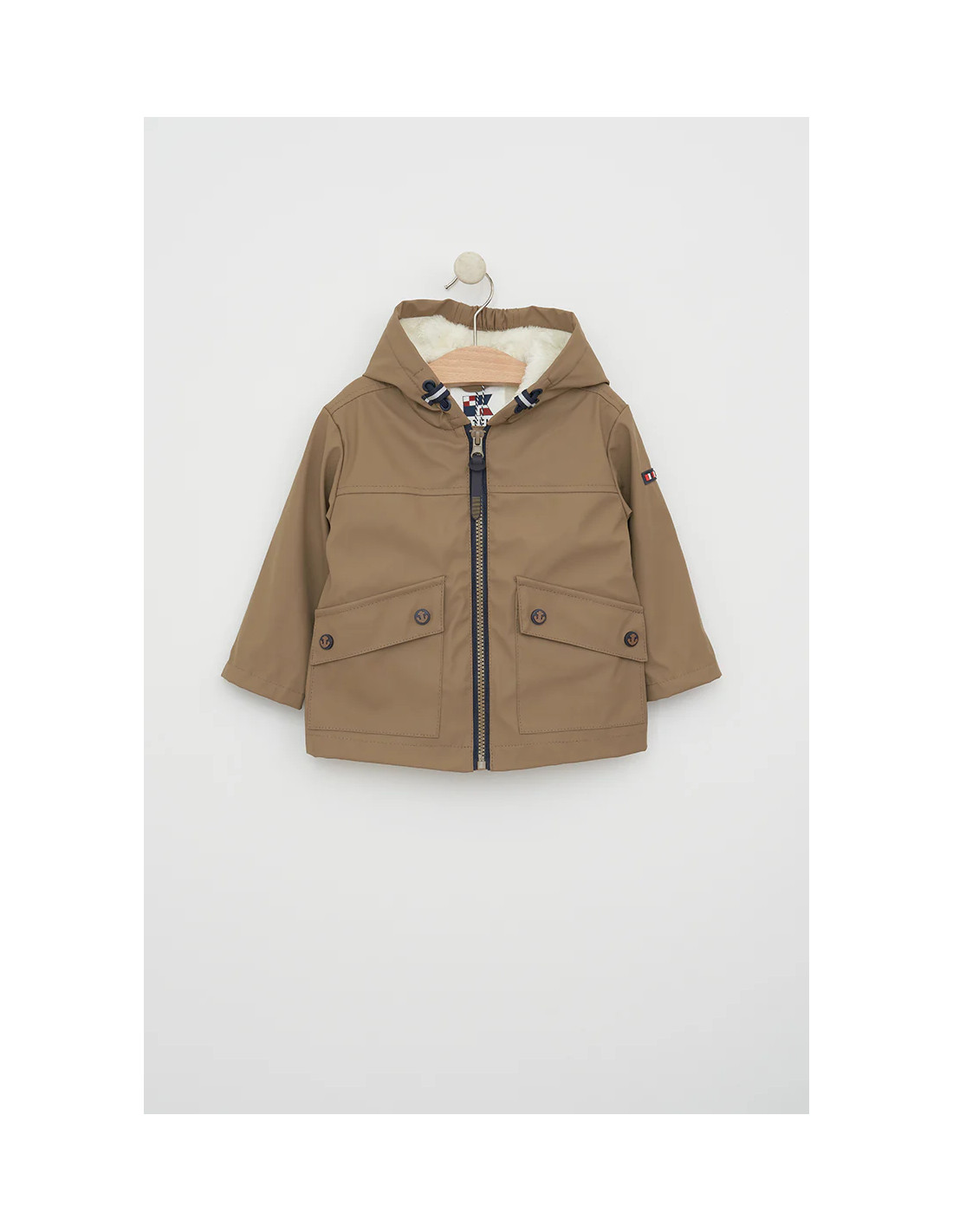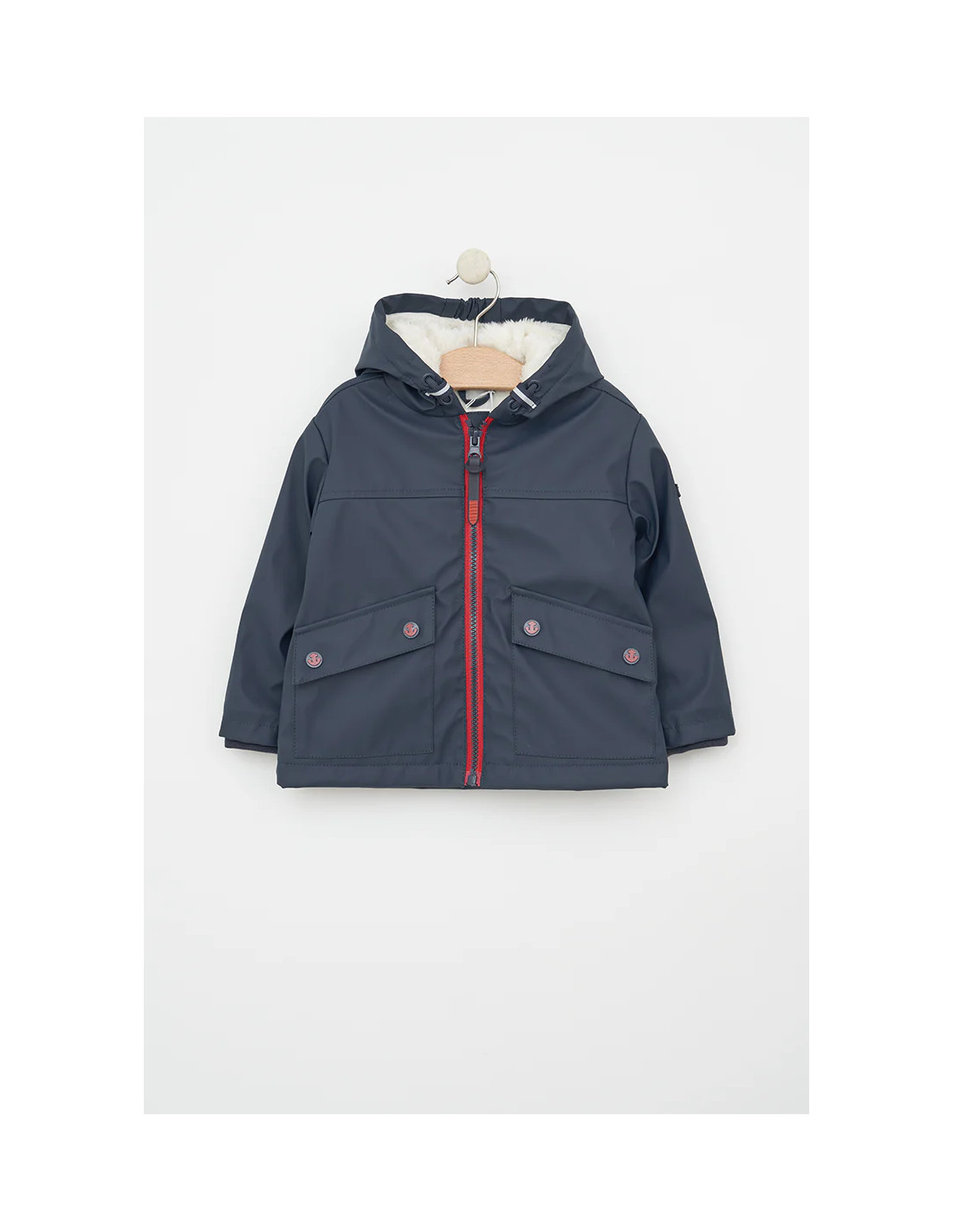 Chubasquero náutico impermeable  para bebé,  con forro de pelo borreguito y capucha estampado.