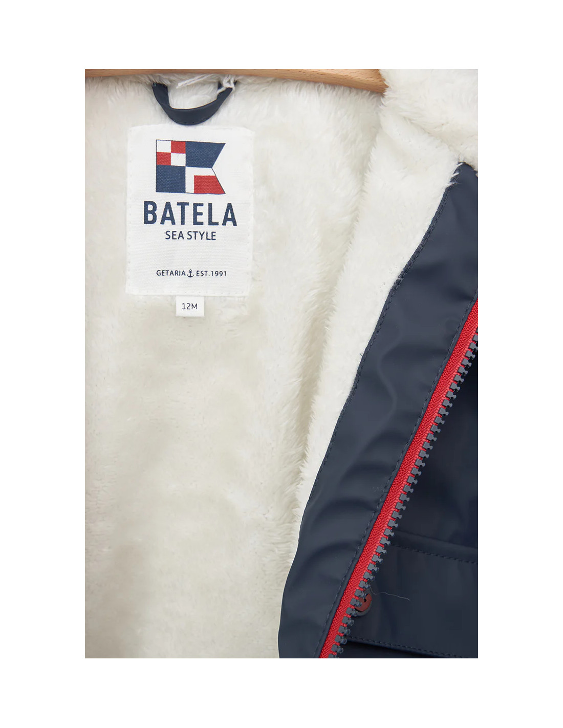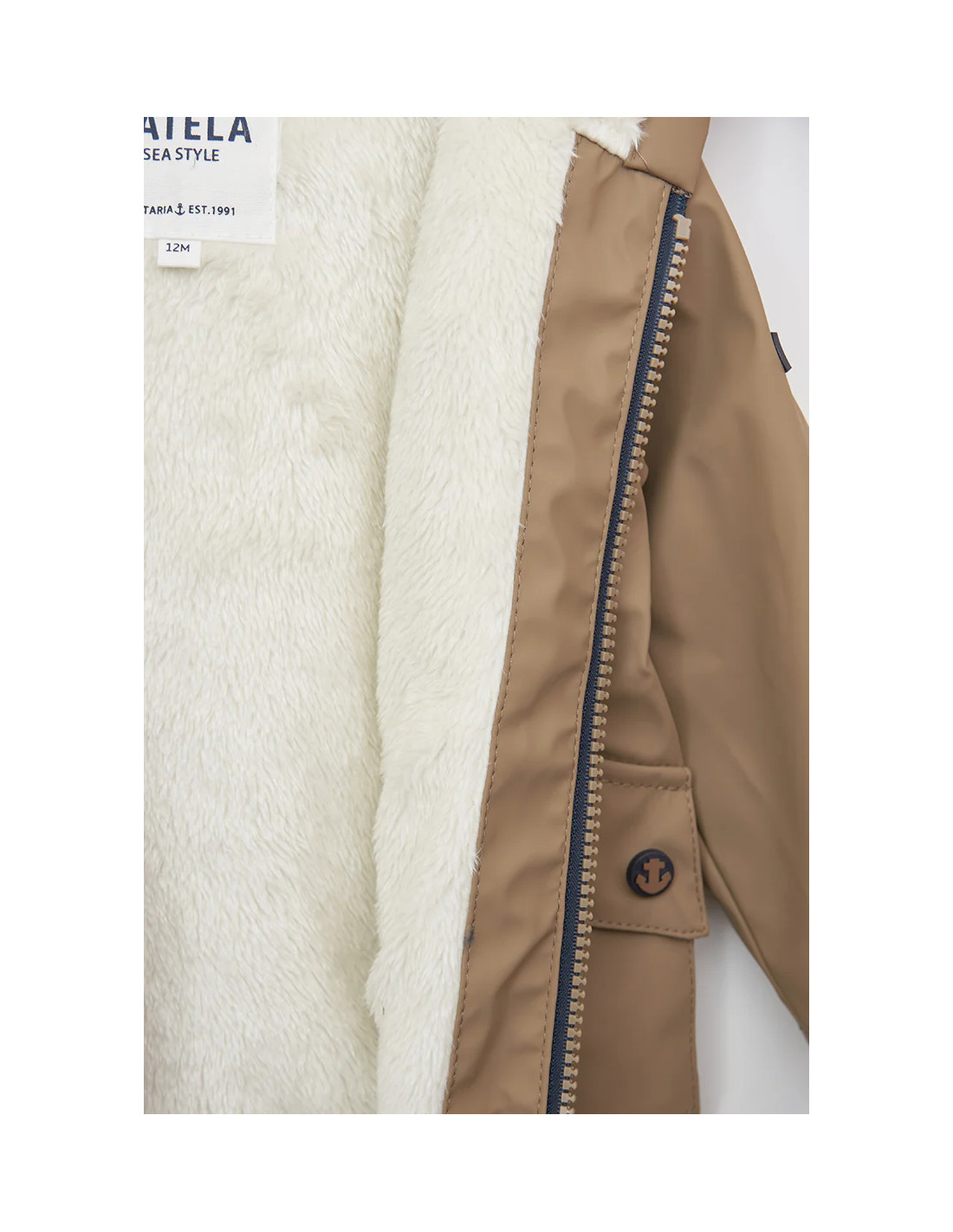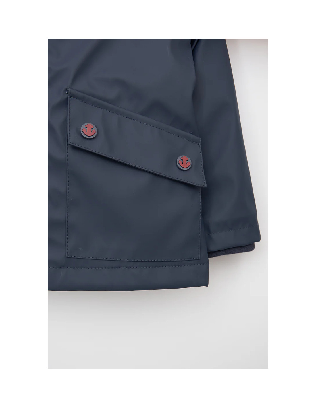 Chubasquero náutico impermeable  para bebé,  con forro de pelo borreguito y capucha estampado.