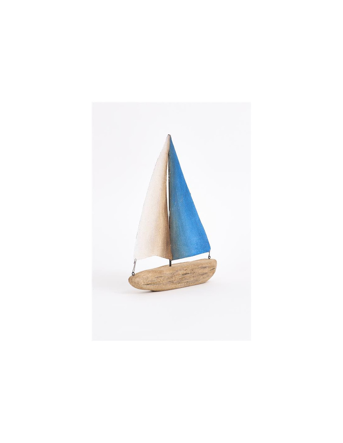 Con un diseño inspirado en la navegación, este barco de madera y metal destaca por su elaboración artesanal y su acabado envejecido.
