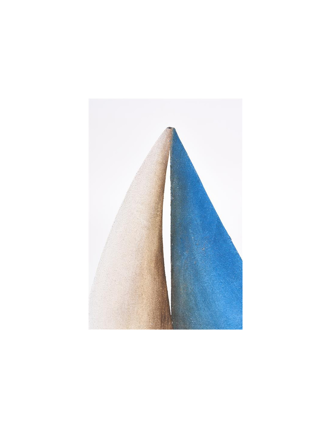 La textura rústica de la madera y los tonos degradados de las velas en azul y beige aportan calidez y autenticidad.