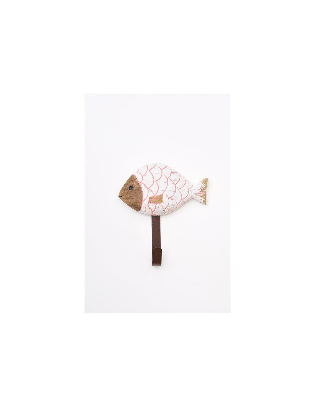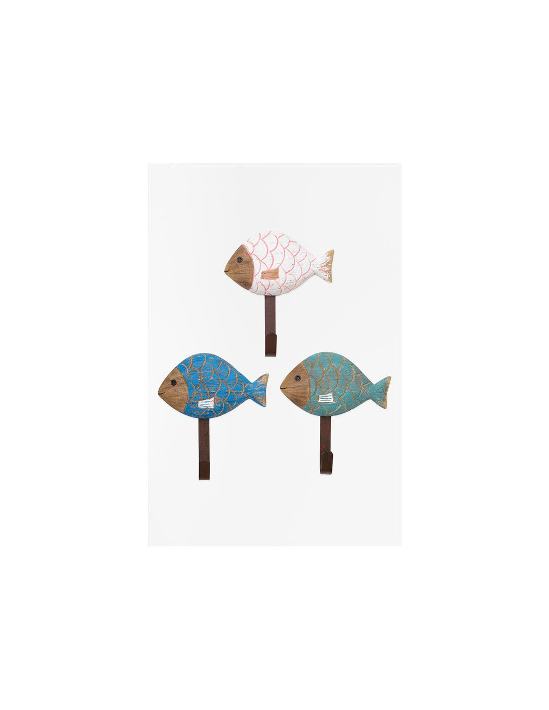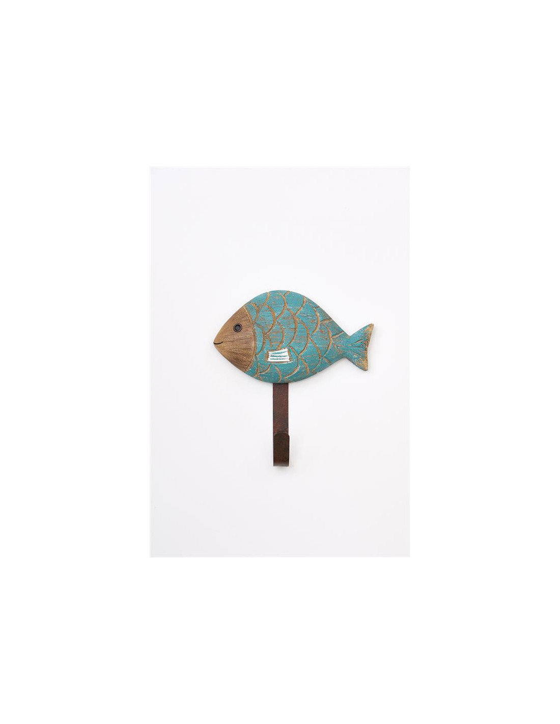 Un perchero decorativo con un encanto náutico, fabricado en madera con peces pintados a mano. Su estructura robusta y ganchos metálicos lo hacen práctico y duradero.