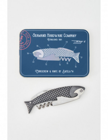 Sacacorchos y navaja náutico con un diseño ingenioso que imita el cuerpo de un pez, elaborado en metal resistente. Este elegante utensilio combina funcionalidad y estilo marino, permitiéndote abrir botellas de vino y de chapa con facilidad. Su diseño único añade un toque de encanto a tus momentos junto al mar, siendo además un regalo perfecto para los amantes de la vida costera.