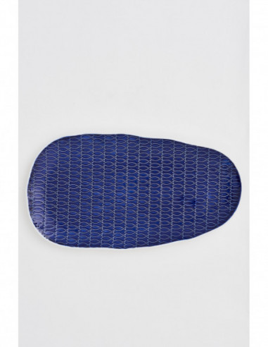 Con su diseño de peces en relieve sobre un fondo azul profundo, este plato ovalado es de cerámica y es una obra de arte funcional que transforma cada comida en una experiencia visualmente impactante. Perfecto para combinar con vajillas náuticas.
