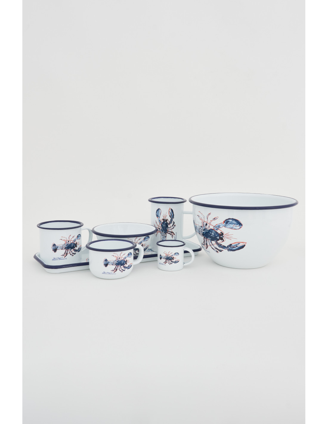 Bol de metal esmaltado blanco con diseño de langosta: duradero, fácil de lavar y con un toque marítimo en cada comida.