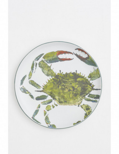 Imagina un plato de cerámica grande, de un blanco resplandeciente, decorado con un impresionante diseño de cangrejo verde que le confiere un aire fresco y costero. Este plato no solo es una pieza funcional para servir tus aperitivos favoritos, sino también una obra de arte que añade un toque de naturaleza marina a tu mesa.