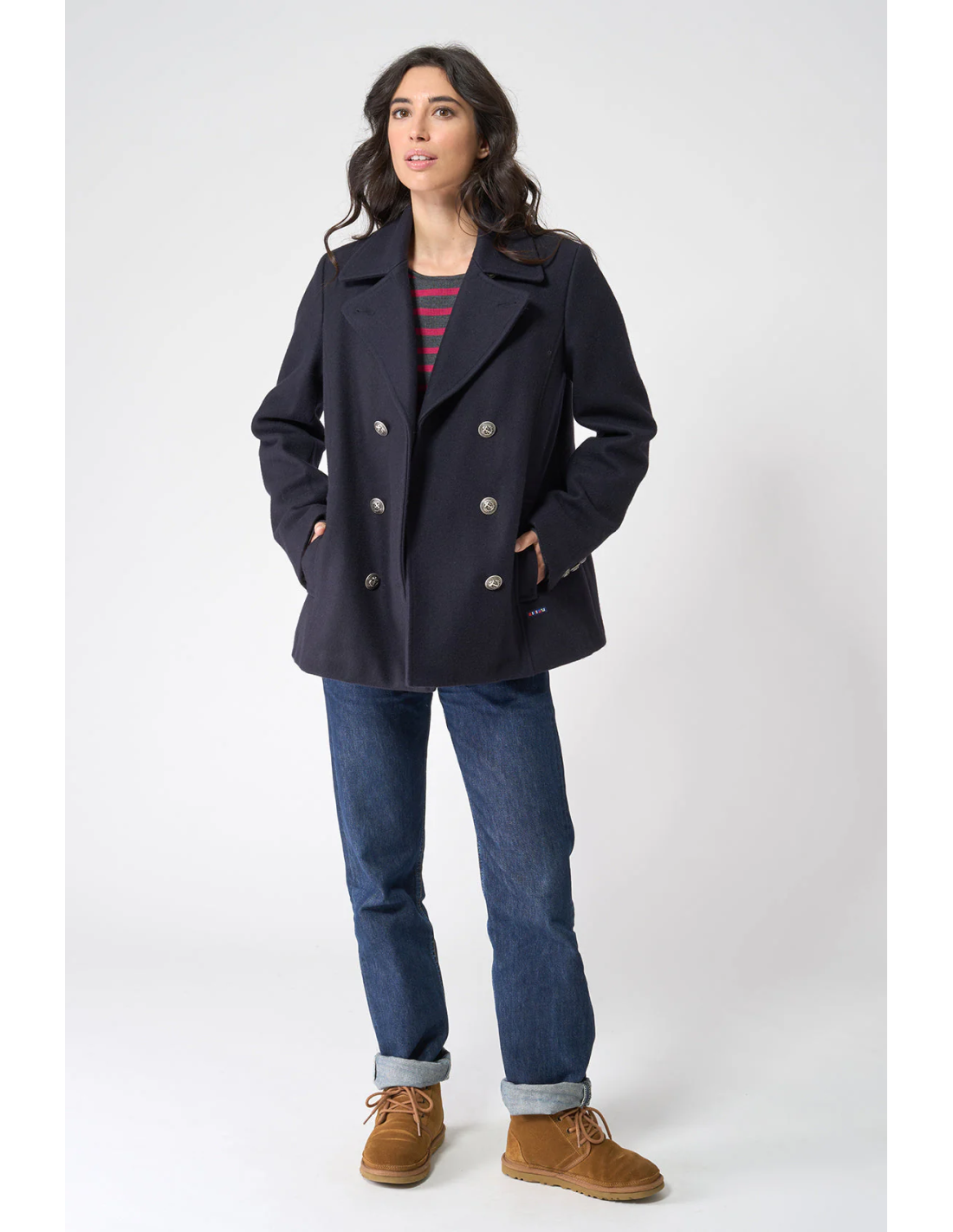 Abrigo marinero para mujer de marca BATELA, un clásico imprescindible que combina elegancia, calidad y calidez. Confeccionado en lana de alta calidad, este chaquetón clásico de estilo marinero es una prenda atemporal que nunca pasa de moda.